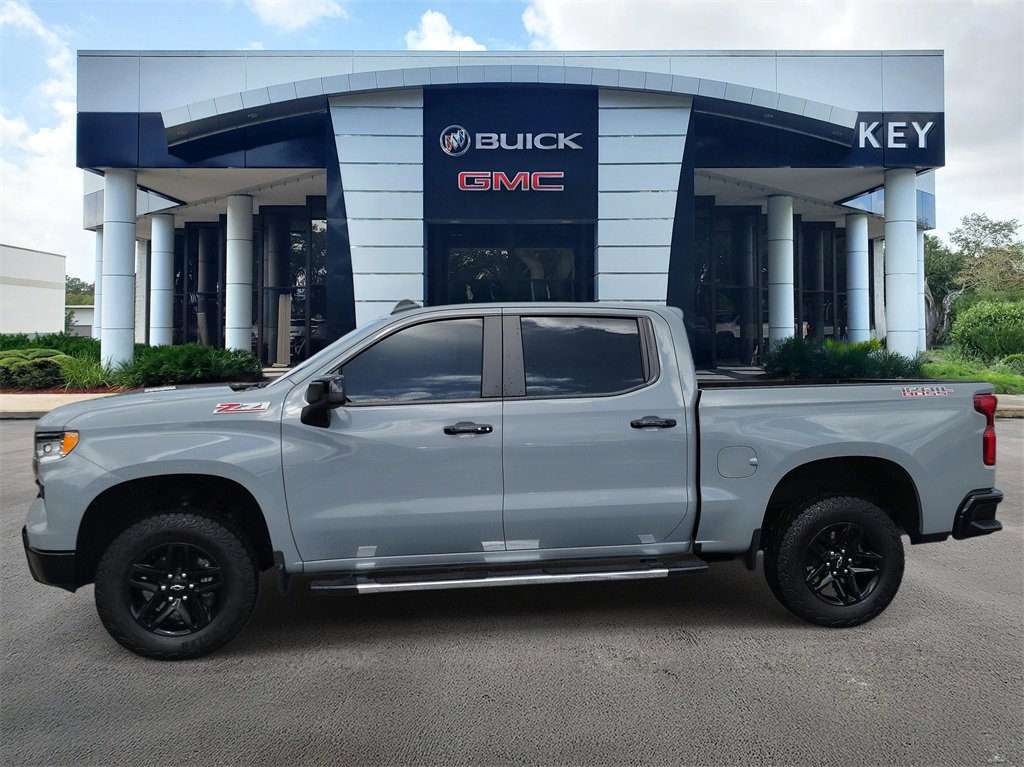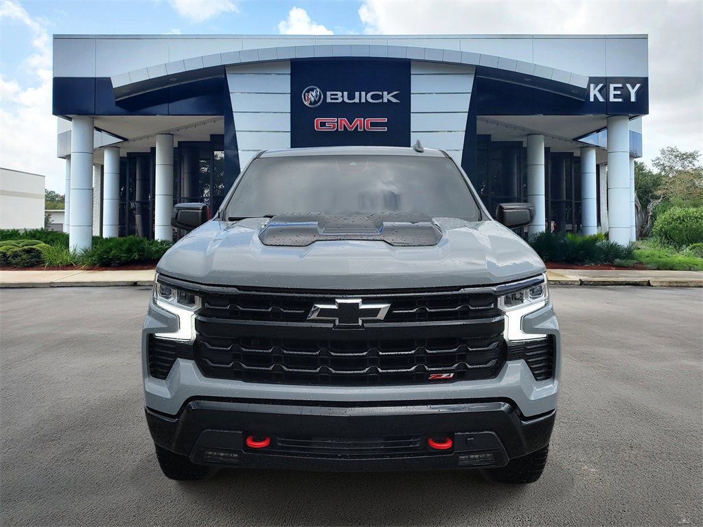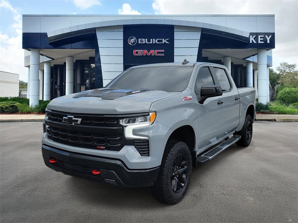 CARFAX One-Owner. Clean CARFAX. Certified. Slate Gray Metallic 2024 Chevrolet Silverado 1500 LT Trail Boss 4WD 10-Speed Automatic 3.0L I6 Silverado 1500 LT Trail Boss, 4D Crew Cab, 3.0L I6, 10-Speed Automatic, 4WD, Slate Gray Metallic, Black Leather, 10-Way Power Driver Seat w/Lumbar, 12.3 Multicolor Reconfigurable Digital Display, 120-Volt Bed Mounted Power Outlet, 120-Volt Interior Power Outlet, 2 USB Data Ports, 220 Amp Alternator, 4-Wheel Disc Brakes, 40/20/40 Front Split-Bench Seat, 6 Speakers, 6-Speaker Audio System, ABS brakes, Adaptive Cruise Control, Air Conditioning, All-Weather Floor Liner (LPO) (AAK), AM/FM radio: SiriusXM with 360L, Auto High-beam Headlights, Auto-Locking Rear Differential, Automatic Emergency Braking, Automatic temperature control, Black Name Plates (LPO), Black Tailgate CHEVROLET Lettering (LPO), Bluetooth® For Phone, Brake assist, Chevrolet Connected Access Capable, Chevytec Spray-On Black Bedliner, Cloth Seat Trim, Color-Keyed Carpeting Floor Covering, Compass, Convenience Package, Convenience Package II, Dark Essentials Package (LPO), Deep-Tinted Glass, Delay-off headlights, Driver door bin, Driver vanity mirror, Dual Exhaust w/Polished Outlets, Dual front impact airbags, Dual front side impact airbags, Dual Rear USB Ports (Charge Only), Dual-Zone Automatic Climate Control, Electric Rear-Window Defogger, Electrical Steering Column Lock, Electronic Cruise Control, Electronic Stability Control, Electronic Transmission Range Selector Shifter, Engine Block Heater, EZ Lift Power Lock & Release Tailgate, Floor Mounted Center Console, Following Distance Indicator, Forward Collision Alert, Front anti-roll bar, Front Bucket Seats, Front Center Armrest w/Storage, Front dual zone A/C, Front fog lights, Front LED Fog Lamps, Front Pedestrian Braking, Front reading lights, Front wheel independent suspension, Fully automatic headlights, HD Rear Vision Camera, Heated door mirrors, Heated Driver & Front Outboard Passenger Seats, Heated front seats, Heated Power-Adjustable Outside Mirrors, Heated Steering Wheel, Heated steering wheel, Heavy-Duty Air Filter, High Gloss Black Mirror Caps, Hill Descent Control, Hitch Guidance, Hitch Guidance w/Hitch View, Illuminated entry, In-Vehicle Trailering System App, Inside Rear-View Mirror w/Tilt, Integrated Trailer Brake Controller, IntelliBeam Automatic High Beam On/Off, Keyless Open & Start, Lane Keep Assist w/Lane Departure Warning, Leather Package, Leather-Appointed Front Seat Trim, LED Cargo Area Lighting, Low tire pressure warning, Occupant sensing airbag, OnStar & Chevrolet Connected Services Capable, Outside temperature display, Overhead airbag, Overhead console, Panic alarm, Passenger door bin, Passenger vanity mirror, Performance Red Recovery Hooks, Power door mirrors, Power driver seat, Power Front Windows w/Driver Express Up/Down, Power Front Windows w/Passenger Express Down, Power Rear Windows w/Express Down, Power Sliding Rear Window w/Rear Defogger, Power steering, Power Sunroof, Power Tailgate, Power windows, Preferred Equipment Group 2LT, Premium audio system: Chevrolet Infotainment 3 Premium, Premium Bose 7-Speaker Sound System, Protection Package, Radio data system, Radio: Chevrolet Infotainment 3 Premium System, Rear 60/40 Folding Bench Seat (Folds Up), Rear reading lights, Rear step bumper, Rear Wheelhouse Liners, Rear window defroster, Remote keyless entry, Remote Vehicle Starter System, Security system, Single Outlet Exhaust, SiriusXM w/360L, Speed control, Speed-sensing steering, Split folding rear seat, Standard Tailgate, Steering Wheel Audio Controls, Steering wheel mounted audio controls, Suspension Package, Telescoping steering wheel, Theft Deterrent System (Unauthorized Entry), Tilt steering wheel, Traction control, Trailering Package, Universal Home Remote, Up-Level Rear Seat w/Storage Package, Variably intermittent wipers, Wheels: 18 x 8.5 Black Painted Aluminum, Wi-Fi Hot Spot Capable, Wire