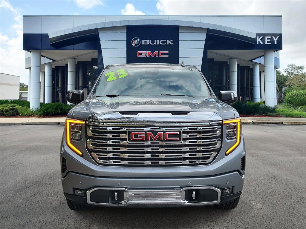 CARFAX One-Owner. Clean CARFAX. Sterling Metallic 2023 GMC Sierra 1500 Denali 4WD 10-Speed Automatic EcoTec3 5.3L V8 Local Trade, Non-Smoker, Fully Detailed, Previously Serviced by Key, Extra Clean Interior, Low Miles For The Year, Extensive Service Records and History, New Vehicle Trade In, Sierra 1500 Denali, 4D Crew Cab, EcoTec3 5.3L V8, 10-Speed Automatic, 4WD, Sterling Metallic, Jet Black Leather, 10-Way Power Driver Seat Adjuster w/Lumbar, 10-Way Power Passenger Seat Adjuster w/Lumbar, 120-Volt Bed Mounted Power Outlet, 120-Volt Instrument Panel Power Outlet, 170 Amp Alternator, 2 Charge/Data USB Ports Inside Center Console, 2 Type-C Charge-Only Rear USB Ports, 2 USB Ports, 4-Wheel Disc Brakes, 7 Speakers, ABS brakes, Adaptive Cruise Control, Adaptive suspension, Air Conditioning, AM/FM radio, Apple CarPlay/Android Auto, Auto High-beam Headlights, Auto-dimming door mirrors, Auto-dimming Rear-View mirror, Auto-Locking Rear Differential, Automatic Emergency Braking, Automatic temperature control, Auxiliary External Transmission Oil Cooler, Bed View Camera, Brake assist, Buckle to Drive, Chrome Header w/Signature Denali Chrome Grille, Chrome Recovery Hooks, Chrome Wheel To Wheel Assist Steps, Color-Keyed Carpeting Floor Covering, Compass, Deep-Tinted Glass, Delay-off headlights, Denali Premium Suspension w/Adaptive Ride Control, Denali Reserve Package, Driver door bin, Driver Memory, Driver vanity mirror, Dual front impact airbags, Dual front side impact airbags, Electric Rear-Window Defogger, Electrical Steering Column Lock, Electronic Stability Control, Emergency communication system: OnStar and GMC connected services capable, Floor-Mounted Center Console, Following Distance Indicator, Forge Perforated Leather Seat Trim, Forward Collision Alert, Front anti-roll bar, Front Bucket Seats, Front Center Armrest, Front dual zone A/C, Front fog lights, Front Pedestrian Braking, Front Prem Floor Liners w/Removable Carpet Insert, Front Rainsensing Wipers, Front reading lights, Front wheel independent suspension, Fully automatic headlights, Garage door transmitter, Genuine wood console insert, Genuine wood dashboard insert, Genuine wood door panel insert, GMC Connected Access Capable, GMC MultiPro Power Steps, HD Surround Vision, Heated 2nd Row Outboard Seats, Heated door mirrors, Heated Driver & Front Outboard Passenger Seating, Heated front seats, Heated rear seats, Heated steering wheel, Heavy-Duty Air Filter, Hill Descent Control, Hitch Guidance, Hitch Guidance w/Hitch View, Illuminated entry, In-Vehicle Trailering App, Integrated Trailer Brake Controller, IntelliBeam Automatic High Beam On/Off, Keyless Open & Start, Lane Keep Assist w/Lane Departure Warning, LED Cargo Area Lighting, Low tire pressure warning, Memory seat, Multicolor 15 Diagonal Head-Up Display, Navigation System, Not Equipped w/Steering Column Lock, Occupant sensing airbag, OnStar & GMC Connected Services Capable, Outside temperature display, Overhead airbag, Overhead console, Panic alarm, Passenger door bin, Passenger vanity mirror, Perimeter Lighting, Power Door Locks, Power door mirrors, Power driver seat, Power Front Passenger Windows w/Express Up/Down, Power Front Windows w/Driver Express Up/Down, Power passenger seat, Power Rake & Telescoping Steering Column, Power Rear Windows w/Express Down, Power Sliding Rear Window w/Rear Defogger, Power steering, Power Sunroof, Power windows, Preferred Equipment Group 5SA, Premium audio system: GMC Infotainment System, Premium Bose 7-Speaker Sound System, Push Button Start, Radio data system, Radio: Premium GMC Infotainment Audio System, Rain sensing wipers, Rear Camera Mirror, Rear Cross Traffic Braking, Rear Pedestrian Detection, Rear Prem Floor Liners w/Removable Carpet Insert, Rear reading lights, Rear seat center armrest, Rear step bumper, Rear Wheelhouse Liners, Rear window defroster, Remote keyless entry, Remote Vehicle Starter System, Safety Alert Seat, Secur