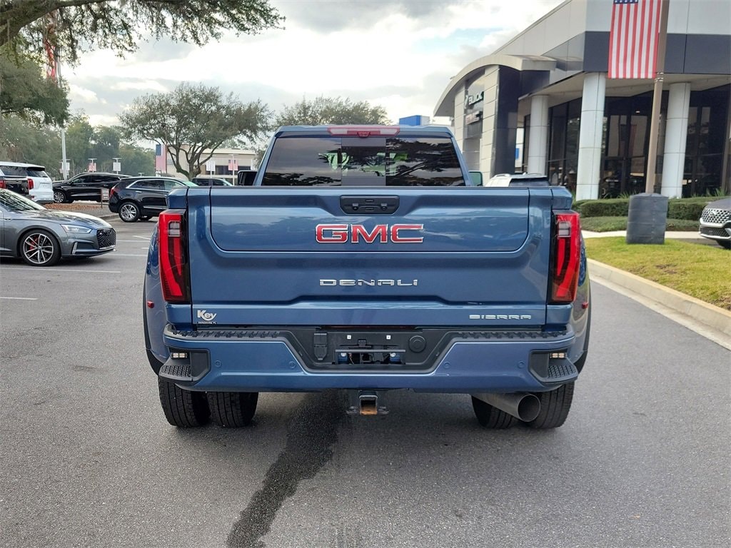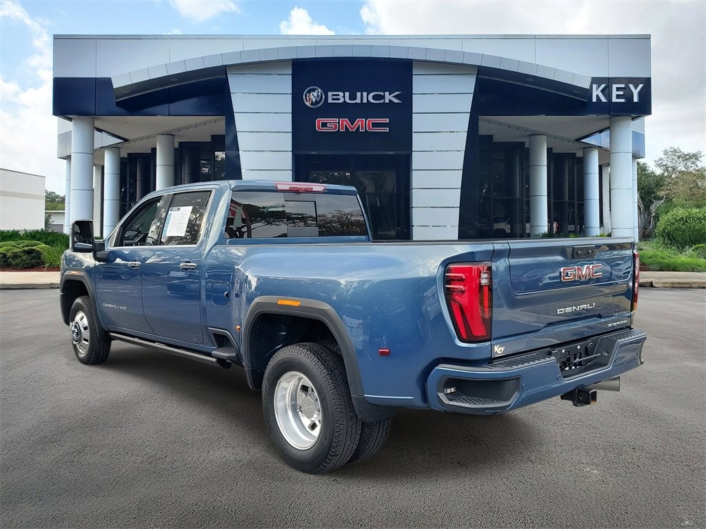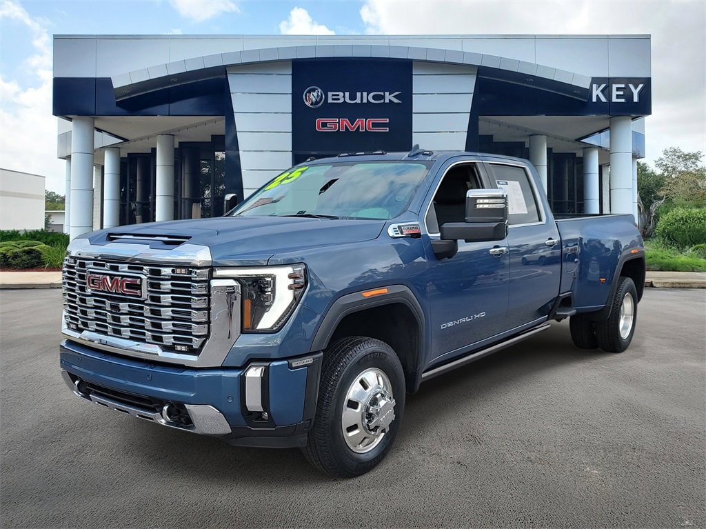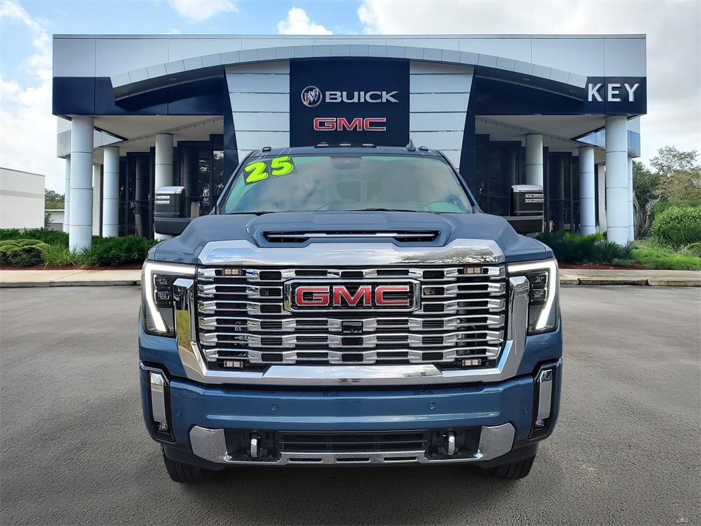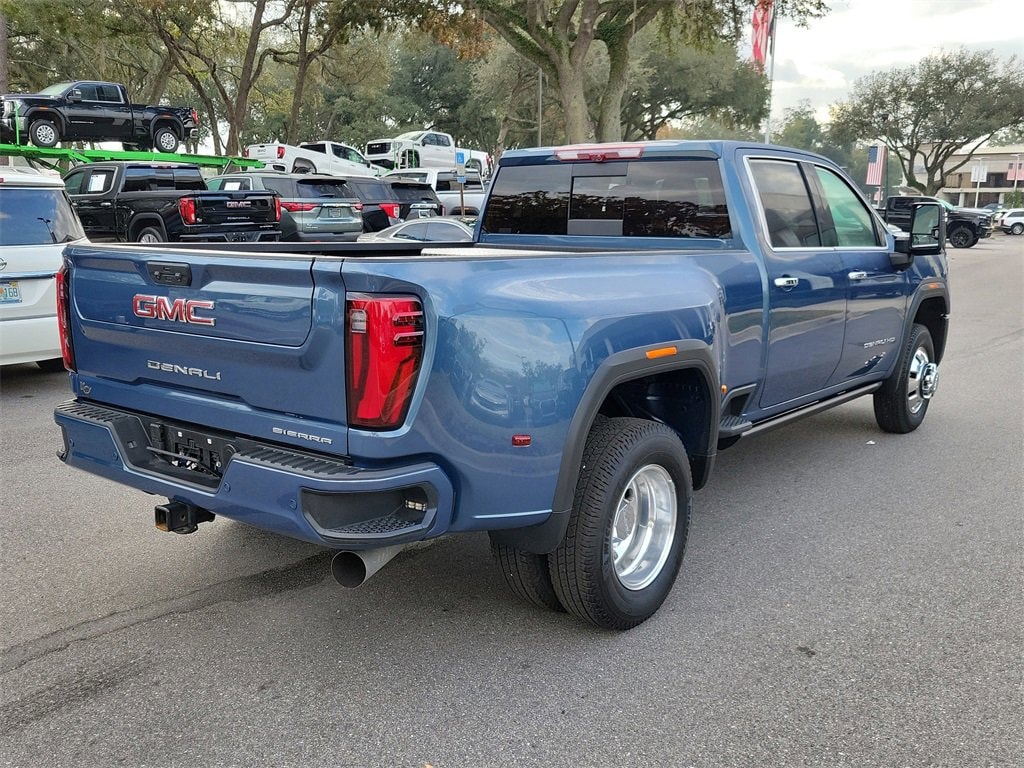 CARFAX One-Owner. Clean CARFAX. Certified. Downpour Metallic 2025 GMC Sierra 3500HD Denali 4WD 10-Speed Automatic Duramax 6.6L V8 Turbodiesel low miles, 10-Speed Automatic, 4WD, Jet Black Leather, 120-Volt Bed Mounted Power Outlet, 120-Volt Instrument Panel Power Outlet, 2 Charge-Only Rear USB Ports, 2 Charge/Data USB Ports Inside Center Console, 2 USB Ports, 2-Speed Active Transfer Case, Alloy wheels, Auto-dimming door mirrors, Auto-Dimming Inside Rearview Mirror w/Camera, Bed View Camera w/2 Trailer Camera Provisions, Bose Premium 7-Speaker Sound System, Deep-Tinted Glass, Denali Reserve Package, Dual 220-Amps Primary/170-Amps Aux Alternators, Electric Rear-Window Defogger, Floor-Mounted Center Console, Front Rain-Sensing Wipers, Gooseneck/5th Wheel Prep Package, HD Surround Vision, Heated 2nd Row Outboard Seats, Heated door mirrors, Heated Driver & Front Outboard Passenger Seats, Heated front seats, Hitch Guidance w/Hitch View, Keyless Open & Start, LED Cargo Area Lighting, LED Smoked Amber Roof Marker Lamps, Manual Tilt-Wheel/Telescoping Steering Column, Multicolor 15 Diagonal Head-Up Display, Polished Exhaust Tip, Power door mirrors, Power Front Windows w/Passenger Express Up/Down, Power Sliding Rear Window w/Defogger, Power Sunroof, Power-Retractable Assist Steps, Preferred Equipment Group 5SA, Push Button Start, Rear Cross Traffic Alert, Remote Vehicle Starter System, Safety Alert Seat, Signature Chrome Denali Grille, SiriusXM w/360L Trial Subscription, Spray-On Pickup Bedliner w/GMC Logo, Steering Wheel Audio Controls, Technology Package, Trailer Camera Provisions, Trailer Side Blind Zone Alert, Ultrasonic Front & Rear Park Assist, Unauthorized Entry Theft-Deterrent System, Universal Home Remote, Ventilated Driver & Front Passenger Seats, Wireless Charging, Wireless Phone Projection.