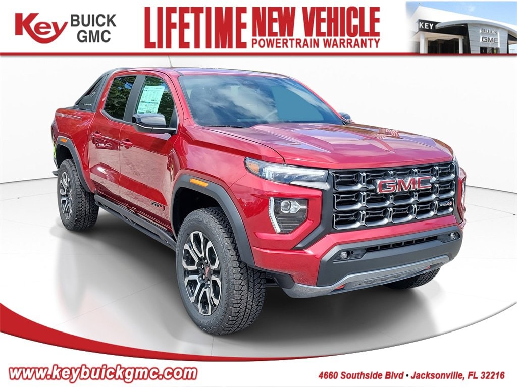 Volcanic Red Tintcoat 2025 GMC Canyon AT4 4WD 8-Speed Automatic 2.7L I4 Turbocharged DOHC 16V LEV3-SULEV30 310hp Canyon AT4, 4D Crew Cab, 2.7L I4 Turbocharged DOHC 16V LEV3-SULEV30 310hp, 8-Speed Automatic, 4WD, Volcanic Red Tintcoat, Jet Black/Timber w/Cloth/CoreTec Seat Trim, 120-Volt Bed Mounted Power Outlet, 2 1st Row USB Charge/Data Ports, 2 Rear USB Ports in Center Console (Charge-Only), 4-Way Manual Front Passenger Seat Adjuster, 4-Wheel Disc Brakes, 6 Speakers, 6-Speaker Audio System Feature, 8-Way Power Driver Seat Adjuster, ABS brakes, Air Conditioning, Alloy wheels, AM/FM radio, Apple CarPlay/Android Auto, Auto High-beam Headlights, Auto-dimming Rear-View mirror, Automatic Emergency Braking, Automatic Stop/Start, Automatic temperature control, Bed-Mounted Tubular Sport Bar (LPO), Black Badges (LPO), Blind Zone Steering Assist w/Trailering, Brake assist, Bumpers: body-color, Canyon Pro Safety, Canyon Safety Plus Package, Cloth/CoreTec Seat Trim, Compass, Delay-off headlights, Driver & Front Passenger Illuminated Visors, Driver door bin, Driver Mode Selector, Driver vanity mirror, Dual front impact airbags, Dual front side impact airbags, Dual-Zone Auto Climate Control Air Conditioning, Electronic Stability Control, Emergency communication system: OnStar, EZ-Lift & Lower Tailgate, Following Distance Indicator, Forward Collision Alert, Front anti-roll bar, Front Center Armrest, Front dual zone A/C, Front fog lights, Front LED Fog Lamps, Front Passenger Seatback Map Pocket, Front Pedestrian & Bicyclist Braking, Front reading lights, Front wheel independent suspension, Heated door mirrors, Heated Driver & Front Passenger Seats, Heated front seats, Illuminated entry, Inside Rear-View Auto-Dimming Mirror, Integrated Trailer Brake Controller, IntelliBeam Automatic High Beam On/Off, Interior Overhead Courtesy Light w/Dual Reading Lamp, Lane Keep Assist w/Lane Departure Warning, Low tire pressure warning, MultiStow Tailgate Storage Compartment, Navigation System, Nightfall Edition, Occupant sensing airbag, Off-Road Suspension, Outside temperature display, Overhead airbag, Overhead console, Panic alarm, Passenger door bin, Passenger vanity mirror, Power door mirrors, Power Driver Lumbar Control Seat Adjuster, Power driver seat, Power steering, Power windows, Preferred Equipment Group 4SG, Radio data system, Radio: 11.3 Diagonal Premium GMC Infotainment Sys, Rear Cross Traffic Braking, Rear of Console 120-Volt Power Outlet, Rear reading lights, Rear step bumper, Rear window defroster, Remote keyless entry, Remote Vehicle Starter System, Rocker Panel Protector (LPO), Security system, Speed control, Speed-sensing steering, Split folding rear seat, Steering wheel mounted audio controls, Stop/Start System Disable Button Engine Control, Tailgate Keyed Cylinder Lock, Telescoping steering wheel, Tilt & Telescopic Manual Steering Column, Tilt steering wheel, Traction control, Ultrasonic Rear Park Assist, Variably intermittent wipers, Wheels: 20 x 9 Machined Faced Aluminum, Wireless Apple CarPlay/Wireless Android Auto.