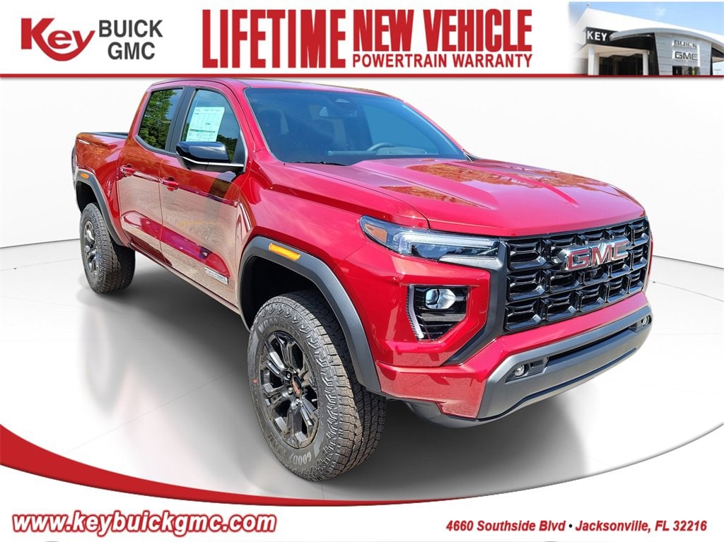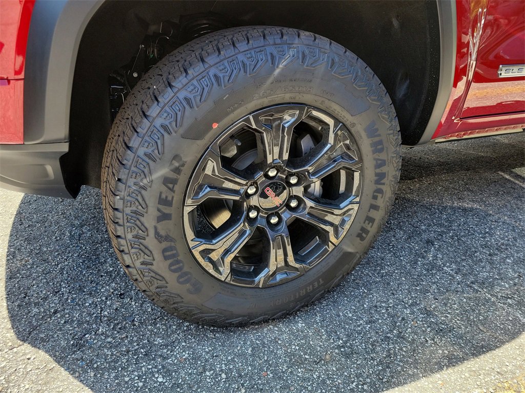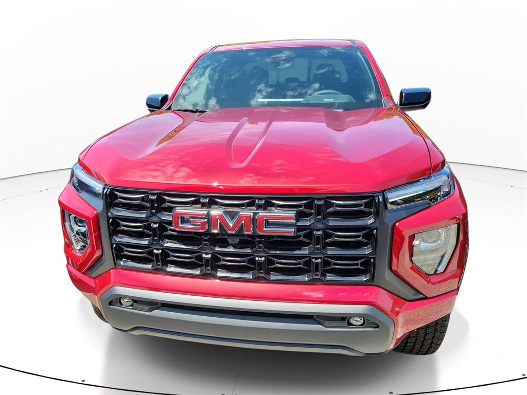 Volcanic Red Tintcoat 2025 GMC Canyon Elevation RWD 8-Speed Automatic 2.7L I4 Turbocharged DOHC 16V LEV3-ULEV50 310hp Canyon Elevation, 4D Crew Cab, 2.7L I4 Turbocharged DOHC 16V LEV3-ULEV50 310hp, 8-Speed Automatic, RWD, Volcanic Red Tintcoat, Black Cloth, 1 Rear USB Port in Center Console (Charge-Only), 120-Volt Bed Mounted Power Outlet, 2 1st Row USB Charge/Data Ports, 2 Rear USB Ports in Center Console (Charge-Only), 4-Way Manual Front Passenger Seat Adjuster, 4-Wheel Disc Brakes, 6 Speakers, 6-Speaker Audio System Feature, 6-Way Manual Driver Seat Adjuster, 8-Way Power Driver Seat Adjuster, ABS brakes, Adaptive Cruise Control, Air Conditioning, Alloy wheels, AM/FM radio, Apple CarPlay/Android Auto, Auto High-beam Headlights, Automatic Emergency Braking, Automatic Stop/Start, Blind Zone Steering Assist w/Trailering, Brake assist, Bumpers: body-color, Canyon Pro Safety, Canyon Safety Plus Package, Cloth Seat Trim, Compass, Convenience Package, Delay-off headlights, Driver & Front Passenger Illuminated Visors, Driver door bin, Driver vanity mirror, Dual front impact airbags, Dual front side impact airbags, Dual-Zone Auto Climate Control Air Conditioning, Electronic Stability Control, Emergency communication system: OnStar, EZ-Lift & Lower Tailgate, Following Distance Indicator, Forward Collision Alert, Front anti-roll bar, Front Bucket Seats, Front Center Armrest, Front LED Fog Lamps, Front Passenger Seatback Map Pocket, Front Pedestrian & Bicyclist Braking, Front wheel independent suspension, HD Surround Vision, Heated door mirrors, Heated Driver & Front Passenger Seats, Illuminated entry, Inside Rear-View Auto-Dimming Mirror, IntelliBeam Automatic High Beam On/Off, Interior Overhead Courtesy Light w/Dual Reading Lamp, Lane Keep Assist w/Lane Departure Warning, Low tire pressure warning, MultiStow Tailgate Storage Compartment, Navigation System, Occupant sensing airbag, Off-Road Suspension, Outside temperature display, Overhead airbag, Overhead console, Panic alarm, Passenger door bin, Passenger vanity mirror, Power door mirrors, Power Driver Lumbar Control Seat Adjuster, Power steering, Power windows, Preferred Equipment Group 2VL, Preferred Package, Radio data system, Radio: 11.3 Diagonal Premium GMC Infotainment Sys, Rear Cross Traffic Braking, Rear of Console 120-Volt Power Outlet, Rear Pedestrian Alert, Rear reading lights, Rear step bumper, Rear window defroster, Remote keyless entry, Remote Vehicle Starter System, Security system, SiriusXM w/360L, Speed control, Speed-sensing steering, Split folding rear seat, Spray-On Bedliner w/GMC Logo, Steering wheel mounted audio controls, Stop/Start System Disable Button Engine Control, Tailgate Keyed Cylinder Lock, Technology Package, Tilt & Telescopic Manual Steering Column, Tilt steering wheel, Traction control, Ultrasonic Rear Park Assist, Variably intermittent wipers, Wheels: 18 x 8.5 Dark Gray Painted Aluminum, Wireless Apple CarPlay/Wireless Android Auto.