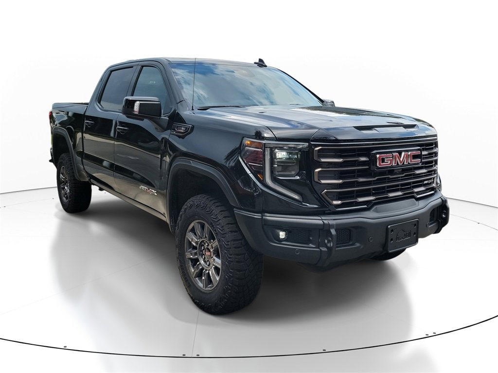 Onyx Black 2025 GMC Sierra 1500 AT4X 4WD 10-Speed Automatic 3.0L I6 Sierra 1500 AT4X, 4D Crew Cab, 3.0L I6, 10-Speed Automatic, 4WD, Onyx Black, Obsidian Rush Leather, 12 Speakers, 120-Volt Bed Mounted Power Outlet, 120-Volt Interior Power Outlet, 16-Way Power Driver Seat Adjuster w/Lumbar, 16-Way Power Passenger Seat Adjuster w/Lumbar, 2 Charge/Data USB Ports Inside Center Console, 2 Type-C Charge-Only Rear USB Ports, 2 USB Ports, 220 Amp Alternator, 4-Wheel Disc Brakes, ABS brakes, Air Conditioning, AM/FM radio: SiriusXM with 360L, Apple CarPlay/Android Auto, Auto High-beam Headlights, Auto-dimming door mirrors, Auto-dimming Rear-View mirror, Automatic Emergency Braking, Automatic temperature control, Bed View Camera, Block heater, Bose Premium Series w/12-Speaker System, Brake assist, Buckle to Drive, Color-Keyed Carpeting Floor Covering, Compass, Deep-Tinted Glass, Delay-off headlights, Driver door bin, Driver Memory, Driver vanity mirror, Driver-Selectable Full-Locking Front Differential, Driver-Selectable Full-Locking Rear Differential, Dual front impact airbags, Dual front side impact airbags, Electric Rear-Window Defogger, Electronic Stability Control, Emergency communication system: OnStar, Engine Block Heater, Floor-Mounted Center Console, Following Distance Indicator, Forward Collision Alert, Front anti-roll bar, Front Bucket Seats, Front Center Armrest, Front dual zone A/C, Front fog lights, Front License Plate Kit, Front Pedestrian Braking, Front Prem Floor Liners w/Removable Carpet Insert, Front Rain-Sensing Wipers, Front reading lights, Front wheel independent suspension, Full Grain Leather Seat Trim, Fully automatic headlights, Garage door transmitter, Genuine wood dashboard insert, Genuine wood door panel insert, Gloss Black Header w/Drk Nickel Grille Insert Bars, HD Surround Vision, Heads-Up Display, Heated 2nd Row Outboard Seats, Heated door mirrors, Heated Driver & Front Outboard Passenger Seating, Heated front seats, Heated rear seats, Heated steering wheel, Heavy-Duty Air Filter, Hill Descent Control, Hitch Guidance, Hitch View, Illuminated entry, In-Vehicle Trailering System App, Integrated Trailer Brake Controller, IntelliBeam Automatic High Beam On/Off, Keyless Open & Start, Lane Keep Assist w/Lane Departure Warning, Leather steering wheel, LED Cargo Area Lighting, Low tire pressure warning, Memory seat, Multicolor 15 Diagonal Head-Up Display, MultiPro Tailgate Audio System by Kicker (LPO), Navigation System, Occupant sensing airbag, Off-Road Suspension, OnStar Services Capable, Outside temperature display, Overhead airbag, Overhead console, Panic alarm, Passenger door bin, Passenger vanity mirror, Perimeter Lighting, Power Door Locks, Power door mirrors, Power driver seat, Power Front Passenger Windows w/Express Up/Down, Power Front Windows w/Driver Express Up/Down, Power moonroof, Power passenger seat, Power Rake & Telescoping Steering Column, Power Rear Windows w/Express Down, Power Sliding Rear Window w/Rear Defogger, Power steering, Power Sunroof, Power windows, Preferred Equipment Group 4SG, Push Button Start, Radio data system, Radio: Premium GMC Infotainment Audio System, Rain sensing wipers, Rear Cross Traffic Braking, Rear Pedestrian Detection, Rear Prem Floor Liners w/Removable Carpet Insert, Rear reading lights, Rear seat center armrest, Rear step bumper, Rear Wheelhouse Liners, Rear window defroster, Remote keyless entry, Remote Vehicle Starter System, Safety Alert Seat, Security system, SiriusXM w/360L Trial Subscription, Speed control, Speed-sensing steering, Split folding rear seat, Spray-On Pickup Bedliner w/GMC Logo, Steering Wheel Audio Controls, Steering wheel mounted audio controls, Telescoping steering wheel, Theft Deterrent System (Unauthorized Entry), Tilt steering wheel, Traction control, Trailer Camera Provisions, Trailer Price includes: $2750 - Buick & GMC Consumer Cash Program. Exp. 11/03/2025 $500 - GM Bonus Cash. Exp. 11/0