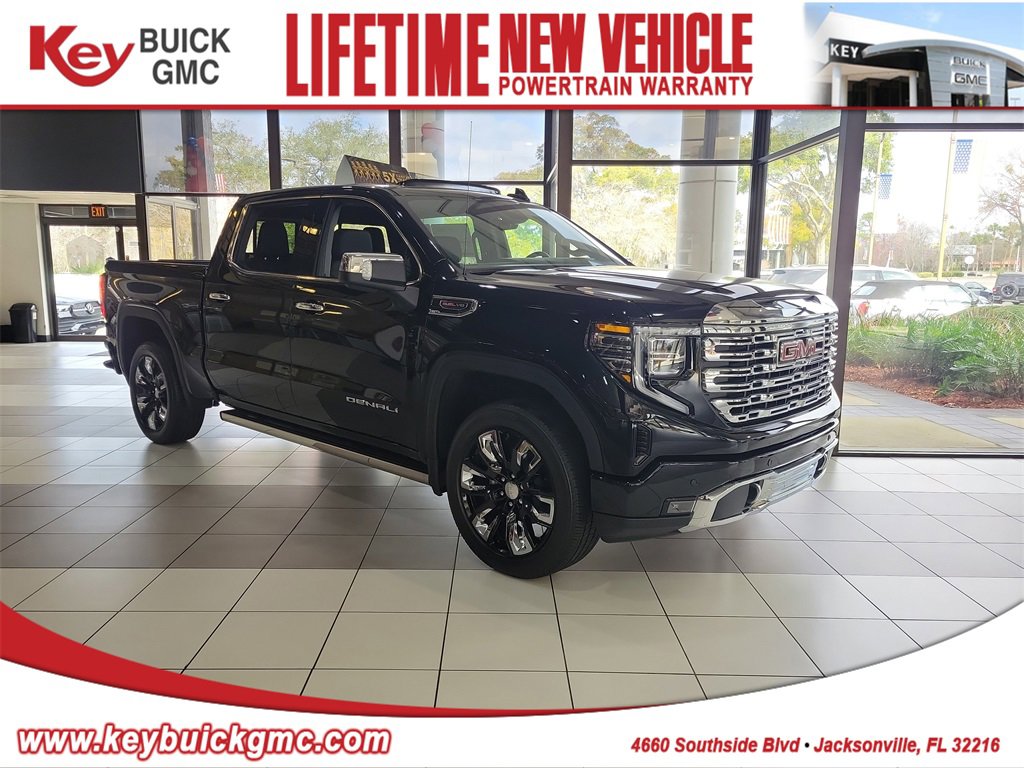 Onyx Black 2026 GMC Sierra 1500 Denali 4WD 10-Speed Automatic EcoTec3 6.2L V8 Sierra 1500 Denali, 4D Crew Cab, EcoTec3 6.2L V8, 10-Speed Automatic, 4WD, Onyx Black, Black Leather, 12-Way Power Driver Seat Adjuster w/Lumbar, 12-Way Power Passenger Seat Adjuster w/Lumbar, 120-Volt Bed Mounted Power Outlet, 120-Volt Interior Power Outlet, 170 Amp Alternator, 2 Charge/Data USB Ports Inside Center Console, 2 Type-C Charge-Only Rear USB Ports, 2 USB Ports, 4-Wheel Disc Brakes, 7 Speakers, ABS brakes, Adaptive suspension, Air Conditioning, Alloy wheels, AM/FM radio: SiriusXM with 360L, Apple CarPlay/Android Auto, Auto High-beam Headlights, Auto-dimming door mirrors, Auto-dimming Rear-View mirror, Auto-Locking Rear Differential, Automatic temperature control, Auxiliary External Transmission Oil Cooler, Bed View Camera, Brake assist, Buckle to Drive, Bumpers: body-color, Chrome Header w/Signature Denali Chrome Grille, Chrome Recovery Hooks, Chrome Wheel To Wheel Assist Steps, Color-Keyed Carpeting Floor Covering, Compass, Deep-Tinted Glass, Delay-off headlights, Denali Premium Suspension w/Adaptive Ride Control, Denali Reserve Package, Driver door bin, Driver Memory, Driver vanity mirror, Dual Active Exhaust, Dual front impact airbags, Dual front side impact airbags, Electric Rear-Window Defogger, Electronic Stability Control, Emergency communication system: OnStar, Enhanced Automatic Emergency Braking, Floor-Mounted Center Console, Following Distance Indicator, Forge Perforated Leather Seat Trim, Forward Collision Alert, Front anti-roll bar, Front Bucket Seats, Front Center Armrest, Front dual zone A/C, Front fog lights, Front Pedestrian Braking, Front Prem Floor Liners w/Removable Carpet Insert, Front Rain-Sensing Wipers, Front reading lights, Front wheel independent suspension, Fully automatic headlights, Garage door transmitter, Genuine wood console insert, Genuine wood dashboard insert, Genuine wood door panel insert, GMC MultiPro Power Steps, HD Surround Vision, Heated 2nd Row Outboard Seats, Heated door mirrors, Heated Driver & Front Outboard Passenger Seating, Heated front seats, Heated rear seats, Heated steering wheel, Heavy-Duty Air Filter, Hill Descent Control, Hitch Guidance, Hitch View, Illuminated entry, In-Vehicle Trailering System App, Integrated Trailer Brake Controller, IntelliBeam Automatic High Beam On/Off, Keyless Open & Start, Lane Keep Assist w/Lane Departure Warning, LED Cargo Area Lighting, Low tire pressure warning, Memory seat, Multicolor 15 Diagonal Head-Up Display, Navigation System, Occupant sensing airbag, OnStar Services Capable, Outside temperature display, Overhead airbag, Overhead console, Panic alarm, Passenger door bin, Passenger vanity mirror, Perimeter Lighting, Power Door Locks, Power door mirrors, Power driver seat, Power Front Passenger Windows w/Express Up/Down, Power Front Windows w/Driver Express Up/Down, Power passenger seat, Power Rake & Telescoping Steering Column, Power Rear Windows w/Express Down, Power Sliding Rear Window w/Rear Defogger, Power steering, Power Sunroof, Power windows, Preferred Equipment Group 5SA, Premium Bose 7-Speaker Sound System, Push Button Start, Radio data system, Radio: Premium GMC Infotainment Audio System, Rain sensing wipers, Rear Camera Mirror, Rear Cross Traffic Braking, Rear Pedestrian Detection, Rear Prem Floor Liners w/Removable Carpet Insert, Rear reading lights, Rear seat center armrest, Rear step bumper, Rear Wheelhouse Liners, Rear window defroster, Remote keyless entry, Remote Vehicle Starter System, Safety Alert Seat, Security system, SiriusXM w/360L Trial Subscription, Speed control, Speed-sensing steering, Split folding rear seat, Spray-On Pickup Bedliner w/GMC Logo, Steering Wheel Audio Controls, Steering wheel mounted audio controls, Technology Package, Telescoping steering wheel, Price includes: $1750 - Buick & GMC Consumer Cash Program. Exp. 03/02/2026 $500 - Buick GMC Bonus Cash. Exp. 03/0