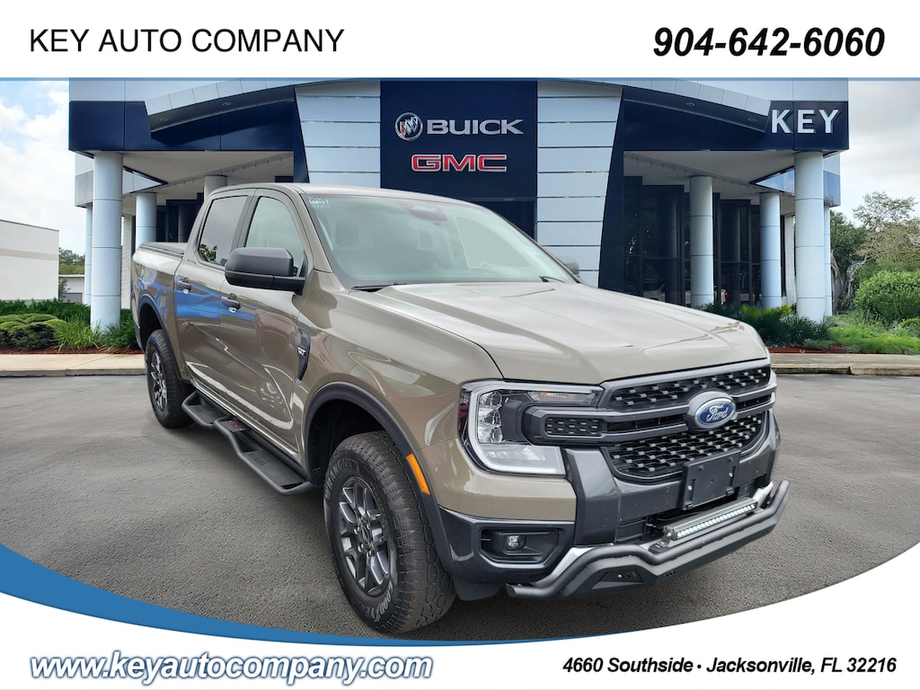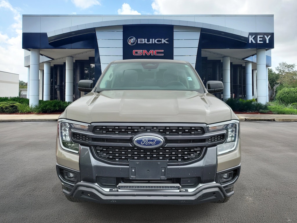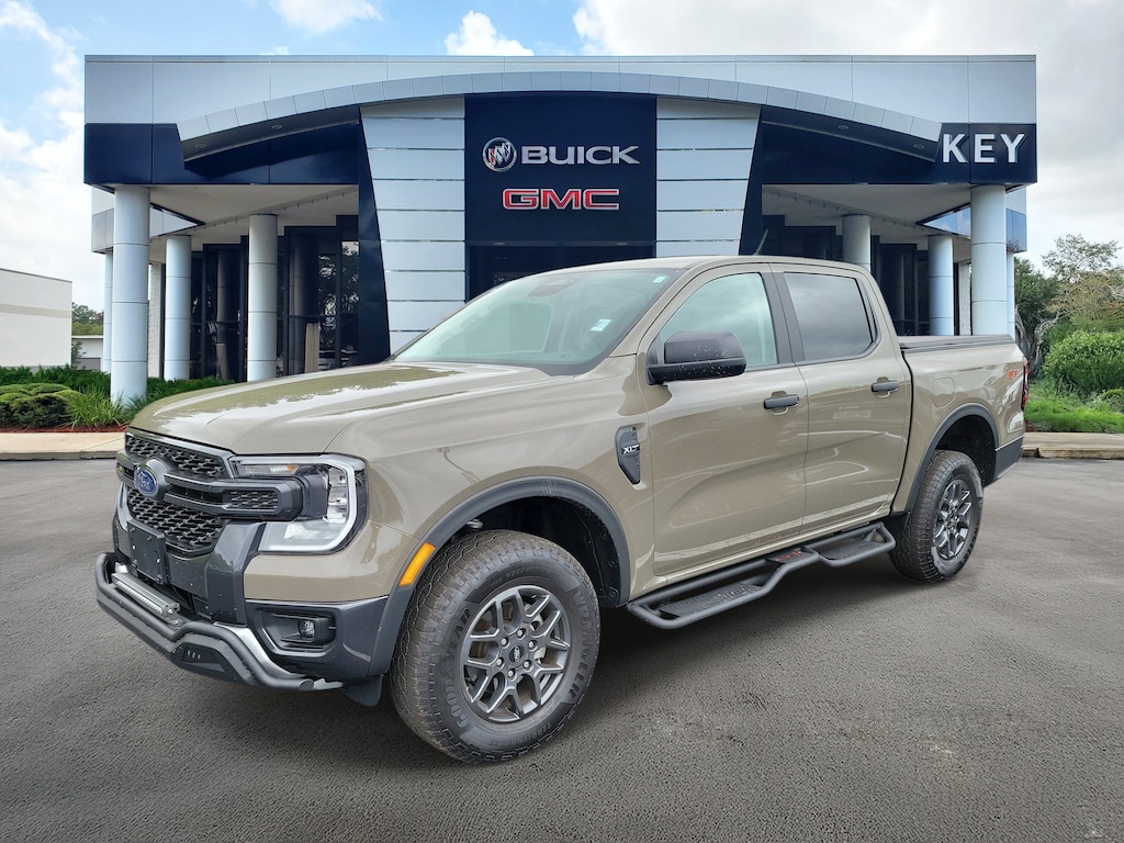 CARFAX One-Owner. Marsh Gray 2025 Ford Ranger XLT 4WD 10-Speed Automatic EcoBoost 2.3L I4 GTDi DOHC Turbocharged VCT Local Trade, Non-Smoker, Fully Detailed, Previously Serviced by Key, Extra Clean Interior, Garage Kept, Low Miles For The Year, New Vehicle Trade In, Ranger XLT, 4D Crew Cab, EcoBoost 2.3L I4 GTDi DOHC Turbocharged VCT, 10-Speed Automatic, 4WD, Marsh Gray, Ebony w/Cloth Front Bucket Seats Or Cloth Front Heated Bucket Seats, 4-Wheel Disc Brakes, 6 Speakers, ABS brakes, Air Conditioning, AM/FM radio: SiriusXM, AM/FM Stereo, Auto High-beam Headlights, Auto-dimming Rear-View mirror, Brake assist, Class IV Trailer Hitch Receiver, Cloth Front Bucket Seats, Compass, Delay-off headlights, Driver door bin, Driver vanity mirror, Dual front impact airbags, Dual front side impact airbags, Electronic Stability Control, Electronic-Locking Rear Differential, Emergency communication system: SYNC 4 911 Assist, Equipment Group 300A Standard, Front anti-roll bar, Front Bucket Seats, Front Center Armrest, Front fog lights, Front License Plate Bracket, Front reading lights, Front wheel independent suspension, Fully automatic headlights, FX4 Off-Road Box Decal, FX4 Off-Road Package, FX4 Selectable Drive Modes, Gray Painted Center Bar & Grille Surround, Gray Painted Front Fascia & Rear Bumper, Illuminated entry, Internet access capable: FordPass Connect 4G, Leather Shift Knob, Low tire pressure warning, Navigation system: Connected Navigation, Occupant sensing airbag, Off-Road Screen in Center Stack, Off-Road Tuned Shocks, Outside temperature display, Overhead airbag, Overhead console, Panic alarm, Passenger door bin, Passenger vanity mirror, Power door mirrors, Power steering, Power windows, Rear reading lights, Rear seat center armrest, Rear step bumper, Rear window defroster, Remote keyless entry, Security system, SiriusXM Satellite Radio, Speed control, Speed-sensing steering, Sport Appearance Package, Sport Box Decal, Steering wheel mounted audio controls, SYNC 4A w/Connected Navigation, Telescoping steering wheel, Tilt steering wheel, Traction control, Trail Control, Trailer Tow Package, Variably intermittent wipers, Wheels: 17 Gray-Painted Aluminum.