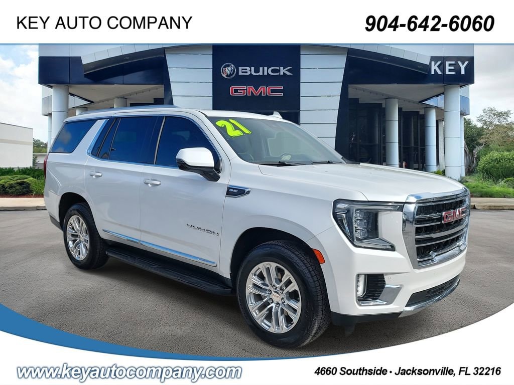New Price! CARFAX One-Owner. Clean CARFAX. White Frost Tricoat 2021 GMC Yukon SLT 4WD 10-Speed Automatic with Overdrive EcoTec3 5.3L V8 Local Trade, Non-Smoker, Fully Detailed, Previously Serviced by Key, Extra Clean Interior, Extensive Service Records and History, New Vehicle Trade In, Yukon SLT, 4D Sport Utility, EcoTec3 5.3L V8, 10-Speed Automatic with Overdrive, 4WD, White Frost Tricoat, Jet Black Leather, 12-Way Power Seat Adjusters, 2 Presets For Outside Rearview Mirrors, 2 Presets For Power Driver Seat, 3rd Row 60/40 Power-Folding Split-Bench Seat, 3rd row seats: split-bench, 4-Wheel Disc Brakes, 9 Speakers, ABS brakes, Air Conditioning, AM/FM radio: SiriusXM with 360L, Apple CarPlay/Android Auto, Auto High-beam Headlights, Auto-dimming Rear-View mirror, Automatic Emergency Braking, Automatic temperature control, Bodyside moldings, Bose 9-Speaker Stereo Audio System Feature, Bright Chrome Bodyside Moldings, Bright Front & Rear Door Sill Plates, Chrome Door Handles w/Body-Color Strip, Compass, Delay-off headlights, Driver door bin, Driver vanity mirror, Dual front impact airbags, Dual front side impact airbags, Dual-Pane Panoramic Power Sunroof, Electronic Stability Control, Emergency communication system: OnStar and GMC connected services capable, Following Distance Indicator, Forward Collision Alert, Four wheel independent suspension, Front & Rear Park Assist, Front anti-roll bar, Front Bucket Seats, Front Center Armrest, Front dual zone A/C, Front fog lights, Front Pedestrian Braking, Front reading lights, Fully automatic headlights, Garage door transmitter, Hands-Free Power Programmable Rear Liftgate, HD Radio, HD Surround Vision, Heated & Ventilated Driver & Front Passenger Seats, Heated 2nd Row Outboard Position Seats, Heated Automatic Steering Wheel, Heated door mirrors, Heated Driver & Front Passenger Seats, Heated front seats, Illuminated entry, Inside Rear-View Auto-Dimming Mirror, IntelliBeam Automatic High Beam On/Off, Lane Change Alert w/Side Blind Zone Alert, Lane Keep Assist w/Lane Departure Warning, Leather steering wheel, Low tire pressure warning, Memory seat, Occupant sensing airbag, Outside Heated Power-Adjustable Mirrors, Outside temperature display, Overhead airbag, Overhead console, Panic alarm, Passenger door bin, Passenger vanity mirror, Perforated Leather Seating Surfaces, Power door mirrors, Power driver seat, Power Liftgate, Power passenger seat, Power Release 2nd Row 60/40 Split-Folding Bench Seat, Power Release 2nd Row Bucket Seats, Power steering, Power Tilt & Telescopic Steering Column, Power windows, Preferred Equipment Group 4SA, Premium Smooth Ride Suspension, Radio: AM/FM/SiriusXM, Rain sensing wipers, Rear air conditioning, Rear anti-roll bar, Rear Cross Traffic Alert, Rear Pedestrian Alert, Rear reading lights, Rear seat center armrest, Rear window defroster, Rear window wiper, Remote keyless entry, Roof rack: rails only, Safety Alert Seat, Security system, SiriusXM w/360L, SLT Luxury Package, SLT Premium Package, Speed control, Speed-sensing steering, Split folding rear seat, Spoiler, Steering wheel mounted audio controls, Traction control, Universal Home Remote, Variably intermittent wipers, Ventilated front seats, Wheels: 20 x 9 6-Spoke Polished Aluminum.