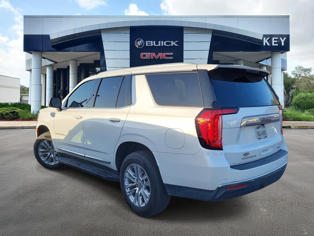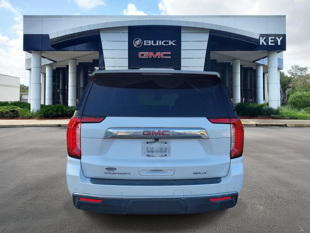 CARFAX One-Owner. Clean CARFAX. White Frost Tricoat 2021 GMC Yukon SLT 4WD 10-Speed Automatic with Overdrive EcoTec3 5.3L V8 Local Trade, Non-Smoker, Fully Detailed, Previously Serviced by Key, Extra Clean Interior, Extensive Service Records and History, New Vehicle Trade In, 4WD, 12-Way Power Seat Adjusters, 2 Presets For Outside Rearview Mirrors, 2 Presets For Power Driver Seat, 3rd Row 60/40 Power-Folding Split-Bench Seat, 3rd row seats: split-bench, 4-Wheel Disc Brakes, 9 Speakers, ABS brakes, Air Conditioning, AM/FM radio: SiriusXM with 360L, Apple CarPlay/Android Auto, Auto High-beam Headlights, Auto-dimming Rear-View mirror, Automatic Emergency Braking, Automatic temperature control, Bodyside moldings, Bose 9-Speaker Stereo Audio System Feature, Bright Chrome Bodyside Moldings, Bright Front & Rear Door Sill Plates, Chrome Door Handles w/Body-Color Strip, Compass, Delay-off headlights, Driver door bin, Driver vanity mirror, Dual front impact airbags, Dual front side impact airbags, Dual-Pane Panoramic Power Sunroof, Electronic Stability Control, Emergency communication system: OnStar and GMC connected services capable, Following Distance Indicator, Forward Collision Alert, Four wheel independent suspension, Front & Rear Park Assist, Front anti-roll bar, Front Bucket Seats, Front Center Armrest, Front dual zone A/C, Front fog lights, Front Pedestrian Braking, Front reading lights, Fully automatic headlights, Garage door transmitter, Hands-Free Power Programmable Rear Liftgate, HD Radio, HD Surround Vision, Heated & Ventilated Driver & Front Passenger Seats, Heated 2nd Row Outboard Position Seats, Heated Automatic Steering Wheel, Heated door mirrors, Heated Driver & Front Passenger Seats, Heated front seats, Illuminated entry, Inside Rear-View Auto-Dimming Mirror, IntelliBeam Automatic High Beam On/Off, Lane Change Alert w/Side Blind Zone Alert, Lane Keep Assist w/Lane Departure Warning, Leather steering wheel, Low tire pressure warning, Memory seat, Occupant sensing airbag, Outside Heated Power-Adjustable Mirrors, Outside temperature display, Overhead airbag, Overhead console, Panic alarm, Passenger door bin, Passenger vanity mirror, Perforated Leather Seating Surfaces, Power door mirrors, Power driver seat, Power Liftgate, Power passenger seat, Power Release 2nd Row 60/40 Split-Folding Bench Seat, Power Release 2nd Row Bucket Seats, Power steering, Power Tilt & Telescopic Steering Column, Power windows, Preferred Equipment Group 4SA, Premium Smooth Ride Suspension, Radio: AM/FM/SiriusXM, Rain sensing wipers, Rear air conditioning, Rear anti-roll bar, Rear Cross Traffic Alert, Rear Pedestrian Alert, Rear reading lights, Rear seat center armrest, Rear window defroster, Rear window wiper, Remote keyless entry, Roof rack: rails only, Safety Alert Seat, Security system, SiriusXM w/360L, SLT Luxury Package, SLT Premium Package, Speed control, Speed-sensing steering, Split folding rear seat, Spoiler, Steering wheel mounted audio controls, Traction control, Universal Home Remote, Variably intermittent wipers, Ventilated front seats, Wheels: 20 x 9 6-Spoke Polished Aluminum.