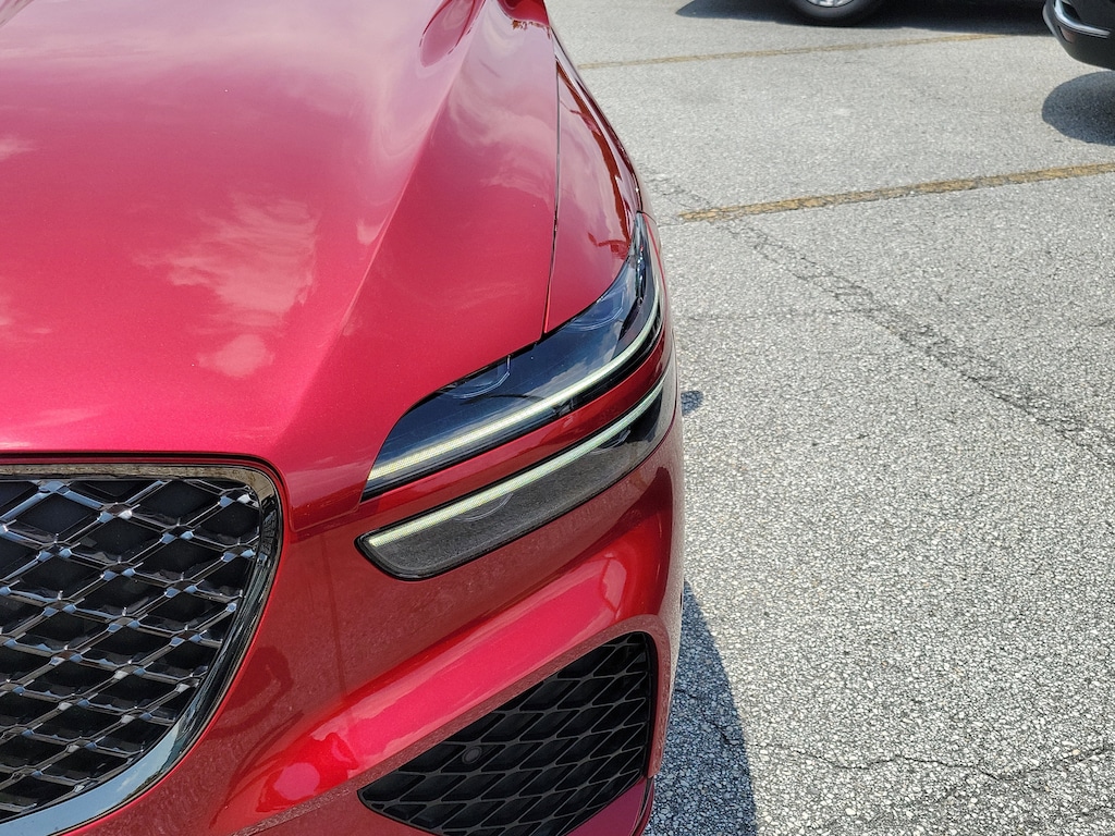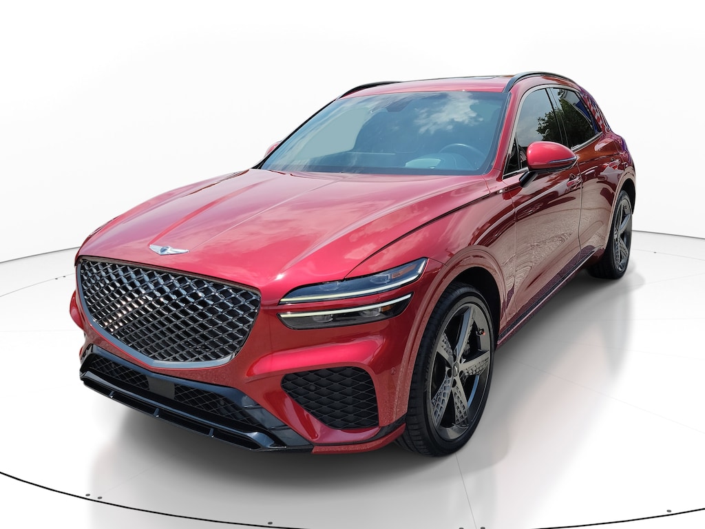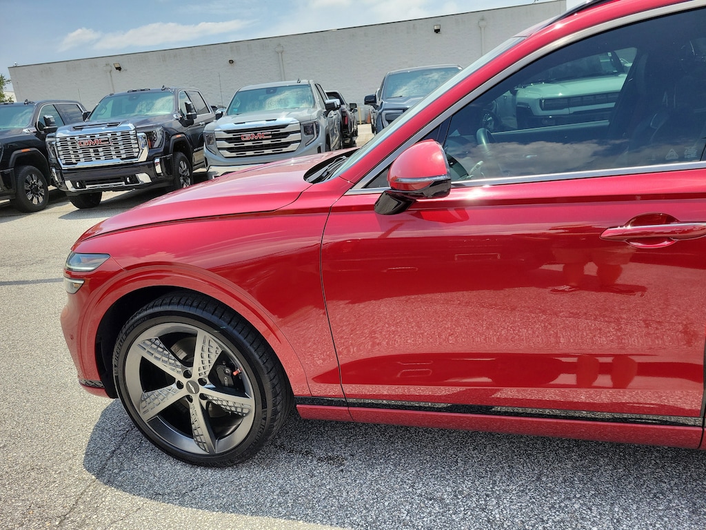 CARFAX One-Owner. Clean CARFAX. Mauna Red 2022 Genesis GV70 3.5T Sport AWD 8-Speed Automatic 3.5L DOHC Local Trade, Non-Smoker, Fully Detailed, Previously Serviced by Key, Extra Clean Interior, Low Miles For The Year, Extensive Service Records and History, New Vehicle Trade In, 2 SETS OF SMART KEYS, GV70 3.5T Sport, 4D Sport Utility, 3.5L DOHC, 8-Speed Automatic, AWD, Mauna Red, Blue Leather, 12.3 3D Digital Cluster, 3-Zone Climate, 4-Wheel Disc Brakes, 9 Speakers, ABS brakes, Acoustic Rear Door Glass, Adaptive suspension, Air Conditioning, AM/FM radio: SiriusXM, Android Auto & Apple CarPlay, Anti-whiplash front head restraints, Auto High-beam Headlights, Auto-dimming door mirrors, Auto-dimming Rear-View mirror, Automatic temperature control, Brake assist, Carbon Fiber Trim, Cargo Cover, Cargo Net, Cargo Package, Delay-off headlights, Driver door bin, Driver vanity mirror, Dual front impact airbags, Dual front side impact airbags, Electronic Limited-Slip Differential, Electronic Stability Control, Emergency communication system, Exterior Parking Camera Rear, First Aid Kit, Four wheel independent suspension, Front anti-roll bar, Front Bucket Seats, Front Center Armrest w/Storage, Front dual zone A/C, Front reading lights, Fully automatic headlights, Garage door transmitter: HomeLink, Heads-Up Display, Heated & Ventilated Front Bucket Seats, Heated 2nd Row Seats, Heated door mirrors, Heated front seats, Illuminated entry, Knee airbag, Leather Seating Surfaces w/Mesh Insert, Low tire pressure warning, Manual Rear Side Sunshades, Memory seat, Nappa Leather Seating Surfaces w/Suede Inserts, Navigation System, Occupant sensing airbag, Option Group 06, Outside temperature display, Overhead airbag, Overhead console, Panic alarm, Passenger door bin, Passenger vanity mirror, Power door mirrors, Power driver seat, Power Liftgate, Power moonroof, Power passenger seat, Power steering, Power windows, Radio: AM/FM/SiriusXM/HD Premium Audio System, Rain sensing wipers, Rear anti-roll bar, Rear Parking Sensors, Rear reading lights, Rear seat center armrest, Rear window defroster, Rear window wiper, Remote keyless entry, Security system, Speed control, Speed-sensing steering, Speed-Sensitive Wipers, Split folding rear seat, Spoiler, Sport Advanced Package, Sport Prestige Package, Steering wheel memory, Steering wheel mounted audio controls, Telescoping steering wheel, Tilt steering wheel, Traction control, Turn signal indicator mirrors, Up Seatback Cargo Mat, Variably intermittent wipers, Ventilated front seats, Wheels: 21 Sport Dark Sputtering Alloy.
