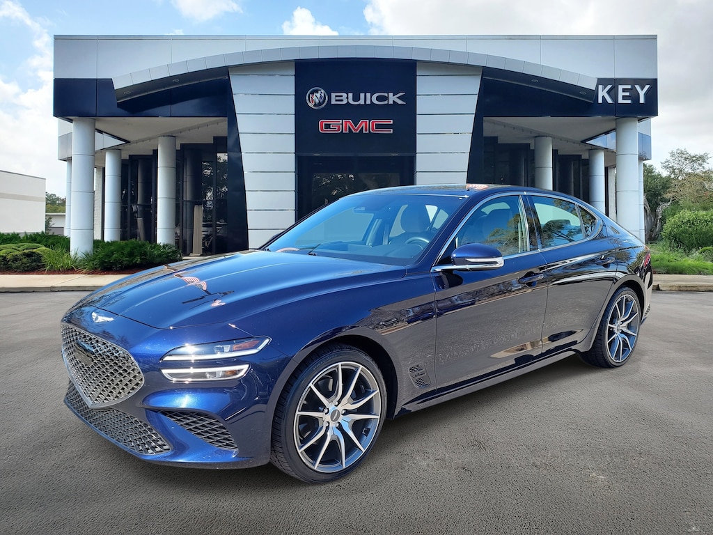 CARFAX One-Owner. Clean CARFAX. Capri Blue 2023 Genesis G70 2.0T RWD 8-Speed Automatic with SHIFTRONIC I4 New Tires, Local Trade, Non-Smoker, Fully Detailed, Previously Serviced by Key, Extra Clean Interior, Low Miles For The Year, Extensive Service Records and History, New Vehicle Trade In, 2 SETS OF SMART KEYS, G70 2.0T, 4D Sedan, I4, 8-Speed Automatic with SHIFTRONIC, RWD, Capri Blue, Obsidian Blk/Sandstorm Gy Artificial Leather, 4-Wheel Disc Brakes, 6 Speakers, ABS brakes, Air Conditioning, AM/FM radio: SiriusXM, Android Auto & Apple CarPlay, Anti-whiplash front head restraints, Auto High-beam Headlights, Auto-dimming Rear-View mirror, Automatic temperature control, Brake assist, Bumper Applique, Delay-off headlights, Driver door bin, Driver vanity mirror, Dual front impact airbags, Dual front side impact airbags, Electronic Stability Control, Emergency communication system: Genesis Connected Services, Exterior Parking Camera Rear, Four wheel independent suspension, Front anti-roll bar, Front Bucket Seats, Front Center Armrest, Front dual zone A/C, Front reading lights, Fully automatic headlights, Garage door transmitter: HomeLink, Heated door mirrors, Heated front seats, Heated Multi-Adjustable Front Bucket Seats, Illuminated entry, Knee airbag, Leatherette Seating Surfaces, Low tire pressure warning, Navigation System, Occupant sensing airbag, Option Group 01, Outside temperature display, Overhead airbag, Overhead console, Panic alarm, Passenger door bin, Passenger vanity mirror, Power door mirrors, Power driver seat, Power passenger seat, Power steering, Power windows, Radio: AM/FM/SiriusXM/HD Audio System, Rear anti-roll bar, Rear reading lights, Rear seat center armrest, Rear window defroster, Remote keyless entry, Reversible Cargo Tray, Security system, Speed control, Speed-Sensitive Wipers, Split folding rear seat, Steering wheel mounted audio controls, Telescoping steering wheel, Traction control, Turn signal indicator mirrors, Variably intermittent wipers, Wheels: 19 x 8.0J Fr & 19 x 8.5J Rr Alloy.