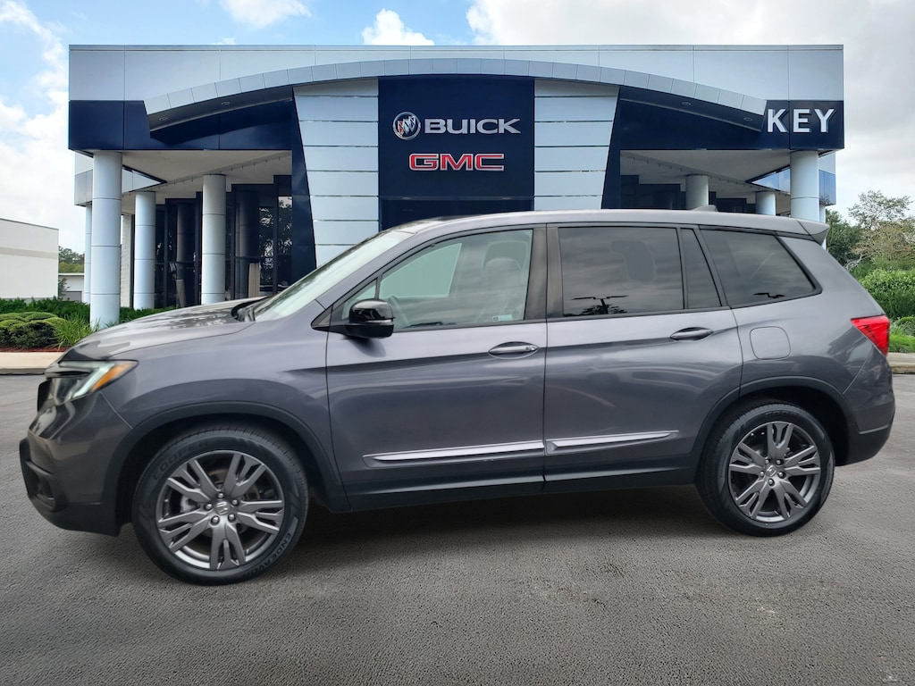 CARFAX One-Owner. Modern Steel Metallic 2021 Honda Passport EX-L FWD 9-Speed Automatic 3.5L V6 24V SOHC i-VTEC Local Trade, Non-Smoker, Fully Detailed, Previously Serviced by Key, Extra Clean Interior, Low Miles For The Year, Extensive Service Records and History, New Vehicle Trade In, Passport EX-L, 4D Sport Utility, 3.5L V6 24V SOHC i-VTEC, 9-Speed Automatic, FWD, Modern Steel Metallic, Black w/Perforated Leather-Trimmed Seats, 4-Wheel Disc Brakes, 7 Speakers, A/V remote: CabinControl, ABS brakes, Air Conditioning, Alloy wheels, AM/FM radio: SiriusXM, Apple CarPlay/Android Auto, Auto High-beam Headlights, Auto-dimming Rear-View mirror, Automatic temperature control, Blind Spot Information (BSI) System warning, Brake assist, Delay-off headlights, Driver door bin, Driver vanity mirror, Driver's Seat Mounted Armrest, Dual front impact airbags, Dual front side impact airbags, Electronic Stability Control, Emergency communication system: HondaLink Assist, Exterior Parking Camera Rear, Forward collision: Collision Mitigation Braking System (CMBS) + FCW mitigation, Four wheel independent suspension, Front anti-roll bar, Front Bucket Seats, Front Center Armrest, Front dual zone A/C, Front fog lights, Front reading lights, Fully automatic headlights, Garage door transmitter: HomeLink, Heated door mirrors, Heated Front Bucket Seats, Heated front seats, Illuminated entry, Lane departure: Lane Keeping Assist System (LKAS) active, Leather-Trimmed Seats, Low tire pressure warning, Memory seat, Occupant sensing airbag, Outside temperature display, Overhead airbag, Overhead console, Panic alarm, Passenger door bin, Passenger seat mounted armrest, Passenger vanity mirror, Power door mirrors, Power driver seat, Power Liftgate, Power moonroof, Power passenger seat, Power steering, Power windows, Radio data system, Radio: 215-Watt Audio System w/7 Speakers, Rear air conditioning, Rear anti-roll bar, Rear reading lights, Rear seat center armrest, Rear window defroster, Rear window wiper, Remote keyless entry, Security system, Speed control, Speed-sensing steering, Split folding rear seat, Spoiler, Steering wheel mounted audio controls, Telescoping steering wheel, Tilt steering wheel, Traction control, Turn signal indicator mirrors, Variably intermittent wipers, Wheels: 20 Split-Spoke Pewter Gray Alloy.