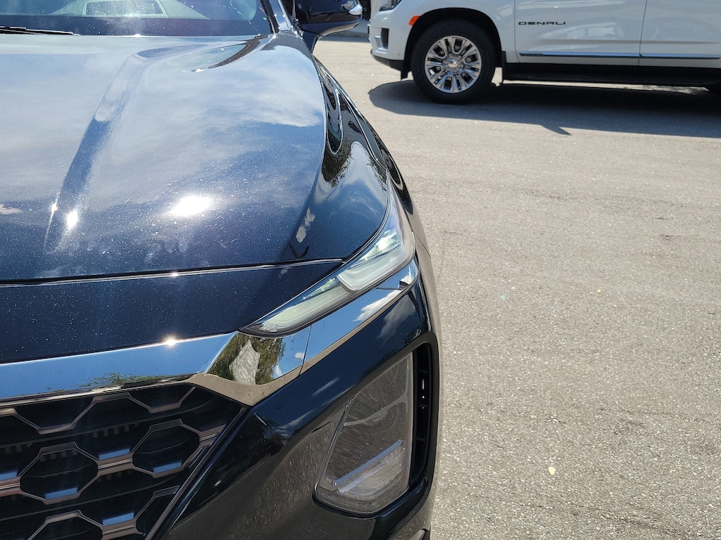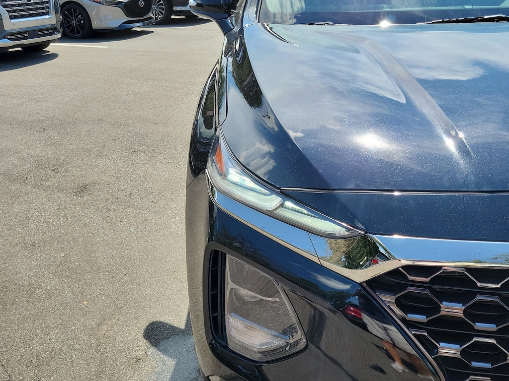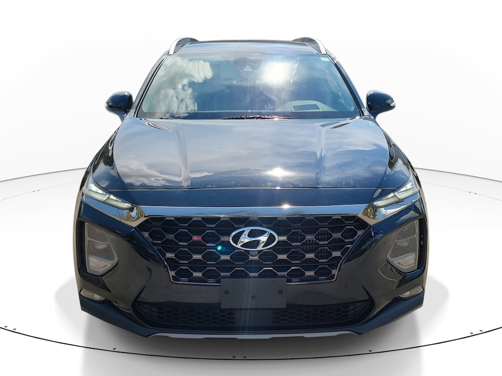 Clean CARFAX. Twilight Black 2019 Hyundai Santa Fe Ultimate AWD 8-Speed Automatic with SHIFTRONIC 2.0L Turbocharged Local Trade, Non-Smoker, Fully Detailed, Previously Serviced by Key, Extra Clean Interior, Low Miles For The Year, Extensive Service Records and History, New Vehicle Trade In, 2 SETS OF SMART KEYS, Santa Fe Ultimate, 4D Sport Utility, 2.0L Turbocharged, 8-Speed Automatic with SHIFTRONIC, AWD, Twilight Black, Espresso/Gray Leather, 12 Speakers, 4-Wheel Disc Brakes, ABS brakes, Air Conditioning, AM/FM radio: SiriusXM, Apple CarPlay & Android Auto, Auto High-beam Headlights, Auto-dimming Rear-View mirror, Automatic temperature control, Brake assist, Bumper Applique, Bumpers: body-color, Cargo Cover, Cargo Net, Carpeted Floor Mats, Compass, Delay-off headlights, Driver door bin, Driver vanity mirror, Dual front impact airbags, Dual front side impact airbags, Electronic Stability Control, Emergency communication system: Blue Link, Exterior Parking Camera Rear, Four wheel independent suspension, Front anti-roll bar, Front Bucket Seats, Front Center Armrest, Front dual zone A/C, Front fog lights, Front reading lights, Fully automatic headlights, Garage door transmitter: HomeLink, Heads-Up Display, Heated & Ventilated Front Bucket Seats, Heated door mirrors, Heated front seats, Heated rear seats, Heated steering wheel, Illuminated entry, Leather Seating Surface, Leather Shift Knob, Leather steering wheel, Low tire pressure warning, Memory seat, Navigation System, Occupant sensing airbag, Option Group 01, Outside temperature display, Overhead airbag, Overhead console, Panic alarm, Passenger door bin, Passenger vanity mirror, Power door mirrors, Power driver seat, Power Liftgate, Power moonroof, Power passenger seat, Power steering, Power windows, Radio: Infinity Premium AM/FM/MP3 Display Audio, Rain sensing wipers, Rear anti-roll bar, Rear Parking Sensors, Rear seat center armrest, Rear window defroster, Rear window wiper, Remote keyless entry, Roof rack: rails only, Security system, Speed control, Speed-sensing steering, Split folding rear seat, Spoiler, Steering wheel mounted audio controls, Telescoping steering wheel, Tilt steering wheel, Traction control, Turn signal indicator mirrors, Variably intermittent wipers, Ventilated front seats, Wheels: 19 x 7.5J Alloy.