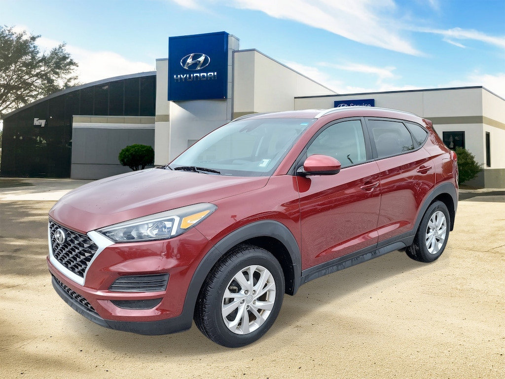 Clean CARFAX. Gemstone Red 2019 Hyundai Tucson Value FWD 6-Speed Automatic with Shiftronic I4 Local Trade, Non-Smoker, Fully Detailed, Previously Serviced by Key, Extra Clean Interior, Low Miles For The Year, Extensive Service Records and History, New Vehicle Trade In, Tucson Value, 4D Sport Utility, I4, 6-Speed Automatic with Shiftronic, FWD, Gemstone Red, Black Cloth, 17 x 7.0J Alloy Wheels, 4-Wheel Disc Brakes, 6 Speakers, ABS brakes, Air Conditioning, Alloy wheels, AM/FM radio: SiriusXM, Apple CarPlay & Android Auto, Brake assist, Bumpers: body-color, Cargo Net, Carpeted Floor Mats, Delay-off headlights, Driver door bin, Driver vanity mirror, Dual front impact airbags, Dual front side impact airbags, Electronic Stability Control, Emergency communication system: Blue Link, Exterior Parking Camera Rear, First Aid Kit, Four wheel independent suspension, Front anti-roll bar, Front Bucket Seats, Front Center Armrest, Front reading lights, Fully automatic headlights, Heated door mirrors, Heated Front Bucket Seats, Heated front seats, Illuminated entry, Low tire pressure warning, Mudguards, Occupant sensing airbag, Option Group 01, Outside temperature display, Overhead airbag, Overhead console, Panic alarm, Passenger door bin, Passenger vanity mirror, Power door mirrors, Power driver seat, Power steering, Power windows, Radio: AM/FM/SiriusXM Audio System, Rear anti-roll bar, Rear Bumper Applique, Rear seat center armrest, Rear window defroster, Rear window wiper, Remote keyless entry, Roof rack: rails only, Security system, Speed control, Speed-sensing steering, Split folding rear seat, Spoiler, Steering wheel mounted audio controls, Tachometer, Telescoping steering wheel, Tilt steering wheel, Traction control, Trip computer, Variably intermittent wipers, Wheel Locks, YES Essentials Cloth Seat Trim.