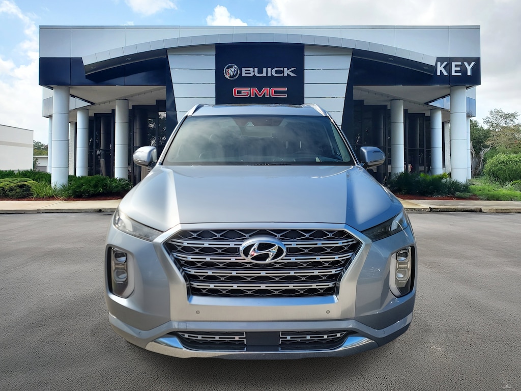 CARFAX One-Owner. Lagoon Silver 2020 Hyundai Palisade Limited FWD 8-Speed Automatic with SHIFTRONIC V6 Local Trade, Non-Smoker, Fully Detailed, Previously Serviced by Key, Extra Clean Interior, Extensive Service Records and History, New Vehicle Trade In, 2 SETS OF SMART KEYS, Palisade Limited, 4D Sport Utility, V6, 8-Speed Automatic with SHIFTRONIC, FWD, Lagoon Silver, Black Leather, 12 Speakers, 3rd row seats: split-bench, 4-Wheel Disc Brakes, ABS brakes, Air Conditioning, AM/FM radio: SiriusXM, Apple CarPlay & Android Auto, Auto High-beam Headlights, Auto-dimming Rear-View mirror, Auto-leveling suspension, Automatic temperature control, Brake assist, Bumper Applique, Bumpers: body-color, Cargo Tray, Carpeted Floor Mats, Compass, Delay-off headlights, Driver door bin, Driver vanity mirror, Dual front impact airbags, Dual front side impact airbags, Electronic Stability Control, Emergency communication system, First Aid Kit, Four wheel independent suspension, Front anti-roll bar, Front Bucket Seats, Front Center Armrest, Front dual zone A/C, Front reading lights, Fully automatic headlights, Garage door transmitter: HomeLink, harman/kardon® Speakers, Heads-Up Display, Heated & Ventilated Front Bucket Seats, Heated door mirrors, Heated front seats, Heated rear seats, Heated steering wheel, Illuminated entry, Knee airbag, Low tire pressure warning, Memory seat, Mudguards, Navigation System, Occupant sensing airbag, Option Group 01, Outside temperature display, Overhead airbag, Overhead console, Panic alarm, Passenger door bin, Passenger vanity mirror, Power door mirrors, Power driver seat, Power Liftgate, Power moonroof, Power passenger seat, Power steering, Power windows, Premium Nappa Leather Seat Trim, Radio data system, Radio: AM/FM/MP3 Premium Audio System, Rain sensing wipers, Rear air conditioning, Rear anti-roll bar, Rear window defroster, Rear window wiper, Reclining 3rd row seat, Remote keyless entry, Security system, Speed control, Speed-sensing steering, Split folding rear seat, Spoiler, Steering wheel mounted audio controls, Telescoping steering wheel, Tilt steering wheel, Traction control, Turn signal indicator mirrors, Variably intermittent wipers, Ventilated front seats, Ventilated rear seats, Wheels: 20 x 7.5J 14-Spoke Premium Finish Alloy.