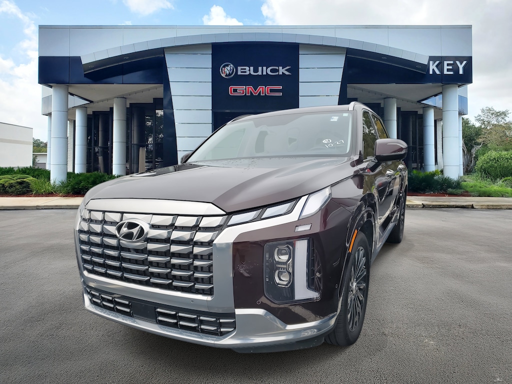 CARFAX One-Owner. Sierra Burgundy 2024 Hyundai Palisade Calligraphy AWD 8-Speed Automatic with SHIFTRONIC V6 Local Trade, Non-Smoker, Fully Detailed, Previously Serviced by Key, Extra Clean Interior, Low Miles For The Year, Extensive Service Records and History, New Vehicle Trade In, 2 SETS OF SMART KEYS, HYUNDAI CERTIFIED PRE OWNED, Palisade Calligraphy, 4D Sport Utility, V6, 8-Speed Automatic with SHIFTRONIC, AWD, Sierra Burgundy, Navy/Beige Leather, 12 Speakers, 3rd row seats: split-bench, 4-Wheel Disc Brakes, ABS brakes, Air Conditioning, Alloy wheels, AM/FM radio: SiriusXM, Apple CarPlay & Android Auto, Auto High-beam Headlights, Auto-dimming door mirrors, Auto-dimming Rear-View mirror, Auto-leveling suspension, Automatic temperature control, Brake assist, Bumper Applique, Bumpers: body-color, Cargo Tray, Carpeted Floor Mats, Compass, Delay-off headlights, Driver door bin, Driver vanity mirror, Dual front impact airbags, Dual front side impact airbags, Electronic Stability Control, Emergency communication system, Exterior Parking Camera Rear, First Aid Kit, Four wheel independent suspension, Front anti-roll bar, Front Bucket Seats, Front Center Armrest, Front dual zone A/C, Front reading lights, Fully automatic headlights, Garage door transmitter: HomeLink, harman/kardon® Speakers, Heads-Up Display, Heated & Ventilated Front Bucket Seats, Heated door mirrors, Heated front seats, Heated rear seats, Heated steering wheel, Illuminated entry, Knee airbag, Low tire pressure warning, Memory seat, Mudguards, Navigation System, Occupant sensing airbag, Option Group 01, Outside temperature display, Overhead airbag, Overhead console, Panic alarm, Passenger door bin, Passenger vanity mirror, Power door mirrors, Power driver seat, Power Liftgate, Power moonroof, Power passenger seat, Power steering, Power windows, Premium Nappa Leather Seat Trim, Radio data system, Radio: AM/FM/MP3 Premium Audio System, Rain sensing wipers, Rear air conditioning, Rear anti-roll bar, Rear reading lights, Rear side impact airbag, Rear window defroster, Rear window wiper, Reclining 3rd row seat, Remote keyless entry, Security system, Speed control, Speed-sensing steering, Split folding rear seat, Spoiler, Steering wheel mounted audio controls, Telescoping steering wheel, Tilt steering wheel, Traction control, Turn signal indicator mirrors, Variably intermittent wipers, Ventilated front seats, Ventilated rear seats, Wheels: 20 x 7.5J Calligraphy Exclusive Alloy.