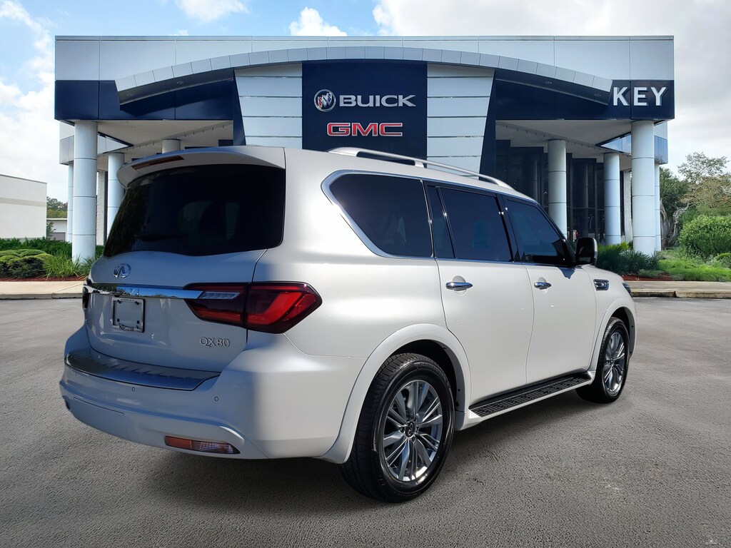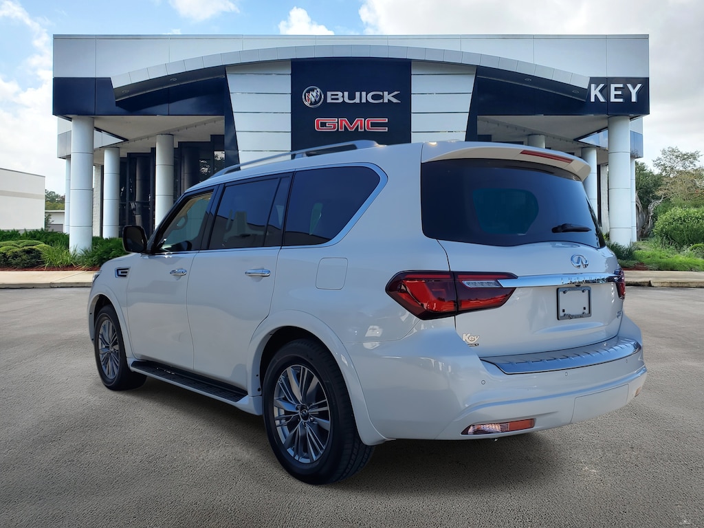 CARFAX One-Owner. Clean CARFAX. Moonstone White 2022 INFINITI QX80 LUXE RWD 7-Speed Automatic 5.6L V8 Local Trade, Non-Smoker, Fully Detailed, Previously Serviced by Key, Extra Clean Interior, Extensive Service Records and History, New Vehicle Trade In, SUPER CLEAN, QX80 LUXE, 4D Sport Utility, 5.6L V8, 7-Speed Automatic, RWD, Moonstone White, Wheat Leather, 13 Speakers, 3rd row seats: split-bench, 4-Wheel Disc Brakes, ABS brakes, Air Conditioning, AM/FM radio: SiriusXM, Anti-whiplash front head restraints, Auto High-beam Headlights, Auto tilt-away steering wheel, Auto-dimming door mirrors, Auto-dimming Rear-View mirror, Auto-leveling suspension, Automatic temperature control, Brake assist, Cargo Package, Compass, Console Net, Delay-off headlights, Driver door bin, Driver vanity mirror, Dual front impact airbags, Dual front side impact airbags, Electronic Stability Control, Emergency communication system: INFINITI InTouch w/1-year trial, First-Aid Kit, Four wheel independent suspension, Front anti-roll bar, Front Bucket Seats, Front Center Armrest, Front dual zone A/C, Front fog lights, Front reading lights, Fully automatic headlights, Garage door transmitter: HomeLink, Heated door mirrors, Heated Front Bucket Seats, Heated front seats, Heated steering wheel, High-Density Non-Slip Rear Cargo Carpet, Illuminated entry, INFINITI Radiant Illuminated Kick Plates (N93), Leather Shift Knob, Leather steering wheel, Leather-Appointed Seats, Literature Kit, Low tire pressure warning, Memory seat, Navigation system: INFINITI InTouch Navigation, Nylon-Cord Cargo Net, Occupant sensing airbag, Outside temperature display, Overhead airbag, Overhead console, Panic alarm, Passenger door bin, Passenger vanity mirror, Power door mirrors, Power driver seat, Power Liftgate, Power moonroof, Power passenger seat, Power steering, Power windows, Premium audio system: Bose, Radio data system, Radio: Bose Premium Audio System w/13 Speakers, Rain sensing wipers, Rear air conditioning, Rear anti-roll bar, Rear reading lights, Rear seat center armrest, Rear window defroster, Rear window wiper, Reclining 3rd row seat, Remote keyless entry, Security system, Speed control, Speed-sensing steering, Split folding rear seat, Spoiler, Steering wheel memory, Steering wheel mounted audio controls, Telescoping steering wheel, Tilt steering wheel, Traction control, Turn signal indicator mirrors, Variably intermittent wipers, Wheels: 20 x 8.0 Aluminum-Alloy.