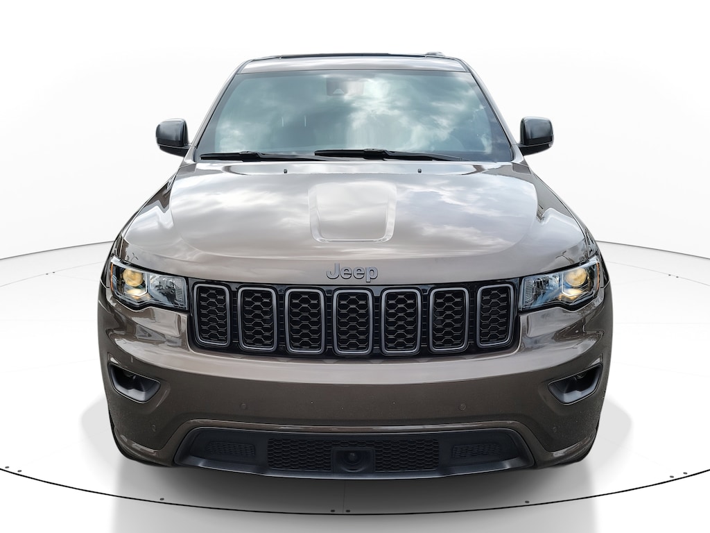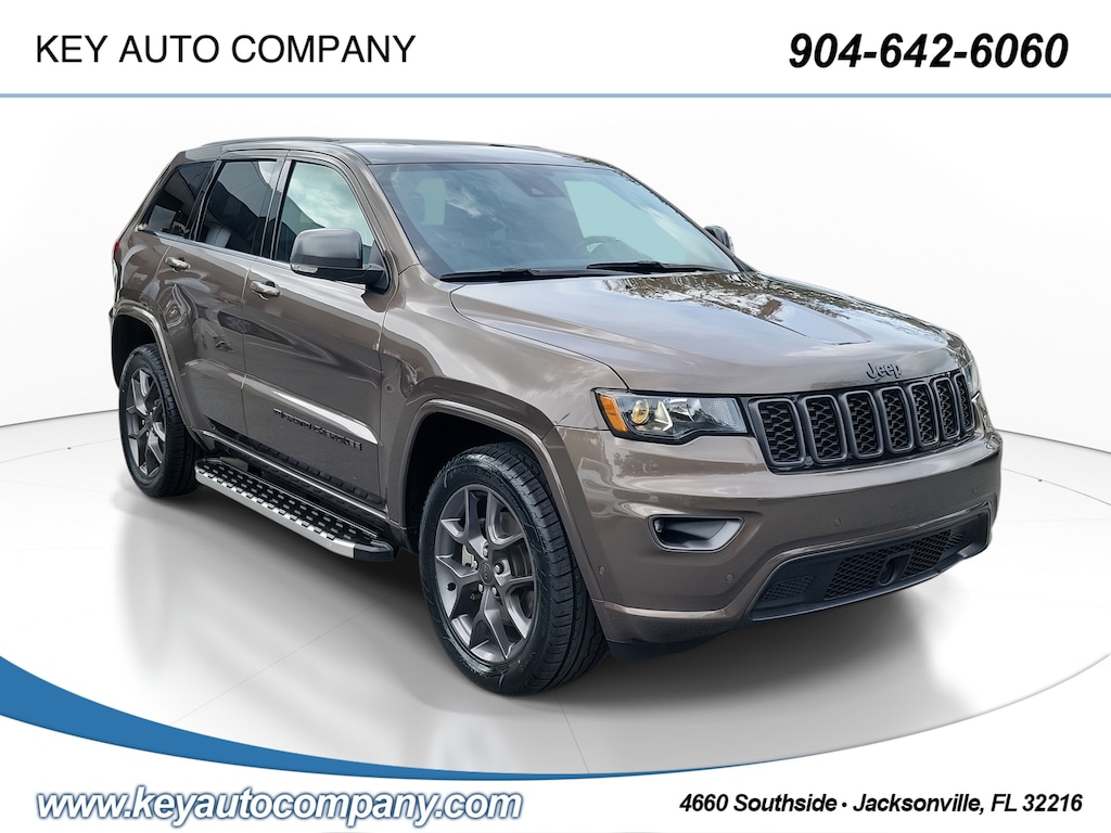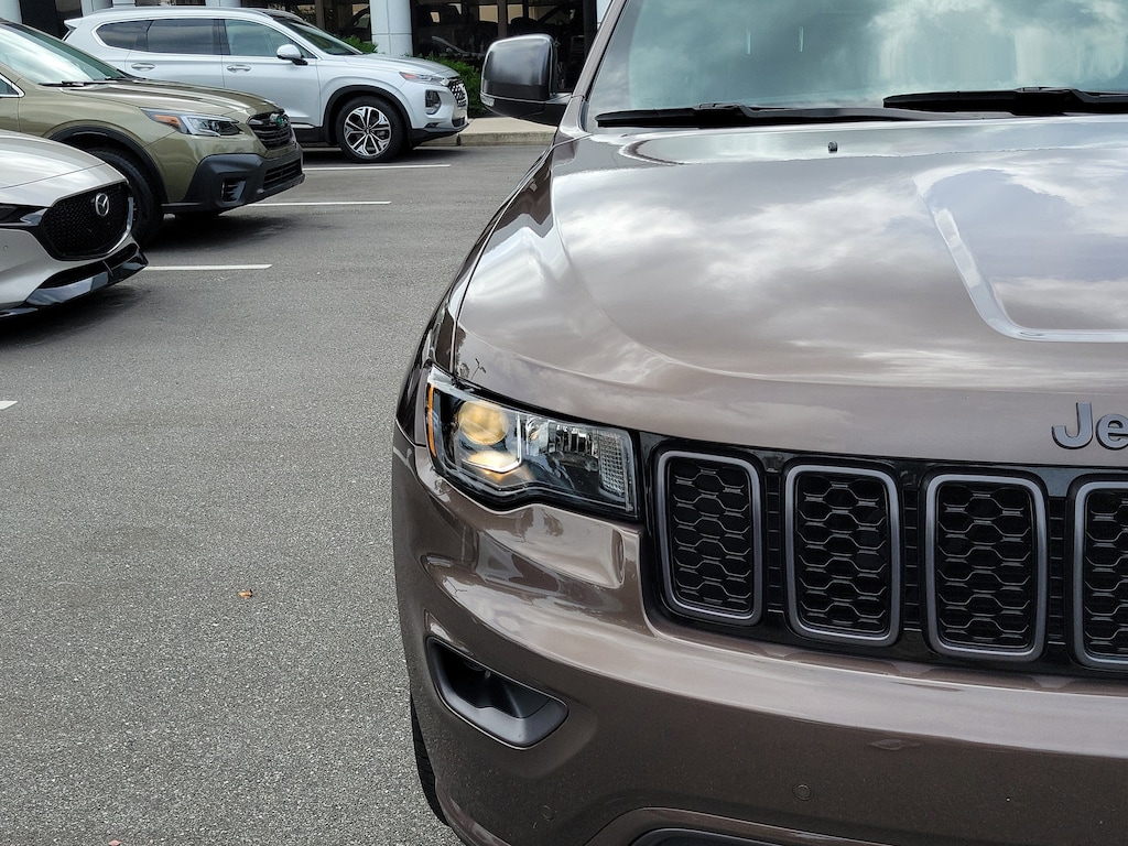 CARFAX One-Owner. Clean CARFAX. Walnut Brown Metallic Clearcoat 2021 Jeep Grand Cherokee 80th Anniversary Edition RWD 8-Speed Automatic 3.6L V6 24V VVT Local Trade, Non-Smoker, Fully Detailed, Previously Serviced by Key, Extra Clean Interior, Low Miles For The Year, Extensive Service Records and History, New Vehicle Trade In, 2 SETS OF SMART KEYS, Grand Cherokee 80th Anniversary Edition, 4D Sport Utility, 3.6L V6 24V VVT, 8-Speed Automatic, RWD, Walnut Brown Metallic Clearcoat, Black Leather, 1-Year SiriusXM Guardian Trial, 4-Wheel Disc Brakes, 4G LTE Wi-Fi Hot Spot, 506 Watt Amplifier, 6 Speakers, 7 & 4 Pin Wiring Harness, 8.4 Touchscreen Display, ABS brakes, Active Noise Control System, Adaptive Cruise Control w/Stop, Advanced Brake Assist, Air Conditioning, Alloy wheels, AM/FM radio: SiriusXM, Anti-whiplash front head restraints, Apple CarPlay, Apple CarPlay/Android Auto, Audio memory, Auto-dimming door mirrors, Auto-dimming Rear-View mirror, Automatic temperature control, Berber Floor Mats w/80th Anniversary Tag, Black Roof Molding, Body Color Claddings, Body Color Door Handles, Body Color Shark Fin Antenna, Brake assist, Bumpers: body-color, Class IV Receiver Hitch, Compass, Dark Day Light Opening Moldings, Dark Headlamp Bezel Finish, Dark Lens Taillamps, Delay-off headlights, Driver door bin, Driver vanity mirror, Dual front impact airbags, Dual front side impact airbags, Dual-Pane Panoramic Sunroof, Eco Suspension I, Electronic Stability Control, Emergency communication system: SiriusXM Guardian, Four wheel independent suspension, Front Accent/Body Color Fascia, Front anti-roll bar, Front Bucket Seats, Front Center Armrest w/Storage, Front dual zone A/C, Front fog lights, Front License Plate Bracket, Front reading lights, Full Speed FWD Collision Warn Plus, Fully automatic headlights, Garage door transmitter, Google Android Auto, GPS Antenna Input, GPS Navigation, Granite Crystal Exterior Accents, Granite Crystal Exterior Badging, Granite Crystal Exterior Mirror Caps, Granite Crystal/Black Grille, HD Radio, Heated door mirrors, Heated front seats, Heated steering wheel, Heavy-Duty Engine Cooling, Illuminated entry, Integrated Voice Command w/Bluetooth, Jeep 80th Anniversary Badges, Jeep 80th Anniversary Edition, Knee airbag, Lane Departure Warning Plus, Leather Shift Knob, Leather Trimmed Bucket Seats, Leather Trimmed Bucket Seats (JY), Low tire pressure warning, LT. Tungsten Interior Accent Stitching, Memory seat, Navigation System, Normal Duty Suspension, Occupant sensing airbag, Outside temperature display, Overhead airbag, Overhead console, Panic alarm, Parallel & Perp Park Assist w/Stop, ParkView Rear Back-Up Camera, Passenger door bin, Passenger vanity mirror, Piano Black/Anod. Gunmetal Interior Accents, Power door mirrors, Power driver seat, Power Liftgate, Power moonroof, Power passenger seat, Power steering, Power windows, Premium Alpine Speaker System, Quick Order Package 2BK 80th, Radio data system, Radio: Uconnect 4C Nav w/8.4 Display, Rain Sensitive Windshield Wipers, Rear Accent/Body Color Fascia, Rear anti-roll bar, Rear Load Leveling Suspension, Rear reading lights, Rear seat center armrest, Rear window defroster, Rear window wiper, Remote keyless entry, Roof rack: rails only, Security system, SiriusXM Satellite Radio, SiriusXM Traffic Plus, SiriusXM Travel Link, Speed control, Speed-sensing steering, Speed-Sensitive Wipers, Split folding rear seat, Spoiler, Steering wheel mounted audio controls, Sun & Sound Group, Telescoping steering wheel, Tilt steering wheel, Traction control, Trailer Tow Group IV, Turn signal indicator mirrors, Variably intermittent wipers, Wheels: 20 x 8.0 Granite Crystal Aluminum.