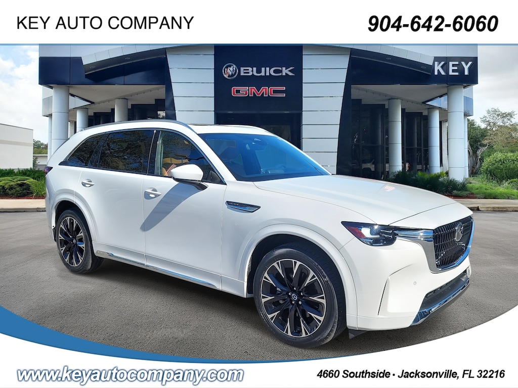 CARFAX One-Owner. Clean CARFAX. Rhodium White Premium 2024 Mazda CX-90 3.3 Turbo S Premium Plus AWD 8-Speed Automatic I6 Turbo Local Trade, Non-Smoker, Fully Detailed, Previously Serviced by Key, Extra Clean Interior, Low Miles For The Year, Extensive Service Records and History, New Vehicle Trade In, 2 SETS OF SMART KEYS, CX-90 3.3 Turbo S Premium Plus, 4D Sport Utility, I6 Turbo, 8-Speed Automatic, AWD, Rhodium White Premium, Tan Leather, 12 Speakers, 3rd row seats: bench, 4-Wheel Disc Brakes, ABS brakes, Air Conditioning, AM/FM radio: SiriusXM, Auto High-beam Headlights, Auto-dimming door mirrors, Auto-dimming Rear-View mirror, Automatic temperature control, Brake assist, Bumpers: body-color, Cargo Net, Compass, Crossbars in Silver, Delay-off headlights, Driver door bin, Driver vanity mirror, Dual front impact airbags, Dual front side impact airbags, E911 Automatic Emergency Notification, Electronic Stability Control, Emergency communication system: MAZDA CONNECT, Four wheel independent suspension, Front anti-roll bar, Front Bucket Seats, Front Center Armrest w/Storage, Front dual zone A/C, Front reading lights, Fully automatic headlights, Garage door transmitter: HomeLink, Heads-Up Display, Heated door mirrors, Heated front seats, Heated rear seats, Heated steering wheel, Heated/Ventilated Front Bucket Seats, Illuminated entry, Infotainment System Voice Command, Knee airbag, Leather Shift Knob, Leather steering wheel, Low tire pressure warning, Mazda Connected Services, Mazda Navigation System, Memory seat, Nappa Leather Seat Trim w/Quilting, Navigation system: MAZDA CONNECT, Occupant sensing airbag, Outside temperature display, Overhead airbag, Overhead console, Pandora Internet Radio Integration, Panic alarm, Passenger door bin, Passenger vanity mirror, Power door mirrors, Power driver seat, Power Liftgate, Power moonroof, Power passenger seat, Power steering, Power windows, Radio Broadcast Data System Program Information, Radio data system, Radio: AM/FM w/Bose Audio Sound System, Rain sensing wipers, Rear air conditioning, Rear anti-roll bar, Rear reading lights, Rear seat center armrest, Rear window defroster, Rear window wiper, Remote keyless entry, Rhodium White Premium Paint Charge, Security system, SMS Text Msg Audio Delivery & Reply, Speed control, Speed-sensing steering, Split folding rear seat, Spoiler, Steering wheel memory, Steering wheel mounted audio controls, Telescoping steering wheel, Tilt steering wheel, Traction control, Turn signal indicator mirrors, Variably intermittent wipers, Ventilated front seats, Ventilated rear seats, Wheels: 21 x 9.5J Aluminum Alloy.