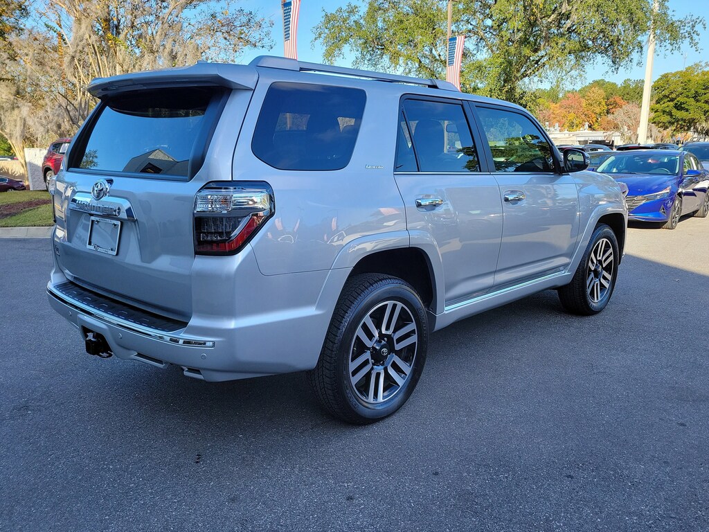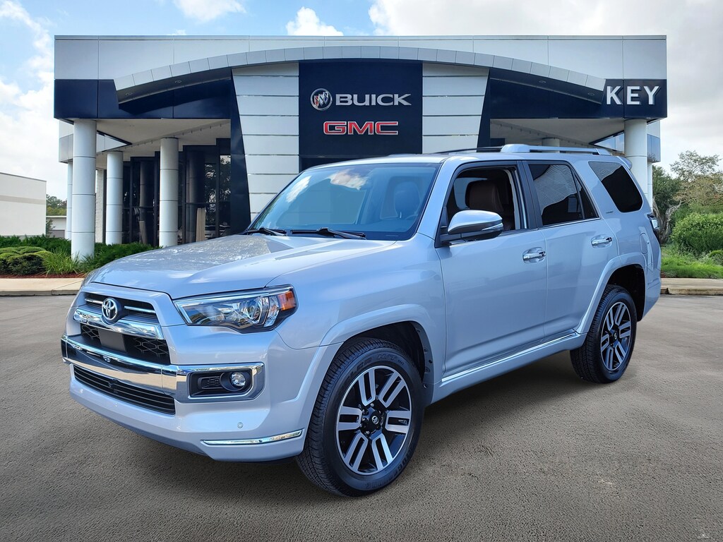 CARFAX One-Owner. Clean CARFAX. Silver 2024 Toyota 4Runner Limited 4WD 5-Speed with ECT 4.0L V6 DOHC 24V Local Trade, Non-Smoker, Fully Detailed, Previously Serviced by Key, Extra Clean Interior, Low Miles For The Year, Extensive Service Records and History, New Vehicle Trade In, LOW MILES, 4Runner Limited, 4D Sport Utility, 4.0L V6 DOHC 24V, 5-Speed with ECT, 4WD, Silver, Black/Graphite w/Leather Seat Trim, 15 Speakers, 4-Wheel Disc Brakes, ABS brakes, Air Conditioning, AM/FM radio: SiriusXM, Anti-whiplash front head restraints, Apple CarPlay/Android Auto, Auto High-beam Headlights, Auto-dimming Rear-View mirror, Automatic temperature control, Brake assist, Bumpers: body-color, Compass, Delay-off headlights, Driver door bin, Driver vanity mirror, Dual front impact airbags, Dual front side impact airbags, Dual Zone Auto Climate Control, Electronic Stability Control, Emergency communication system: Safety Connect (1-year trial), Exterior Parking Camera Rear, Front anti-roll bar, Front Bucket Seats, Front Center Armrest, Front dual zone A/C, Front fog lights, Front reading lights, Front wheel independent suspension, Fully automatic headlights, Garage Door Opener, Garage door transmitter: HomeLink, Heated & Ventilated Front Bucket Seats, Heated door mirrors, Heated front seats, Heated Outside Rear-View Mirrors, Heated steering wheel, Illuminated entry, Knee airbag, Leather Seat Trim, Low tire pressure warning, Memory seat, Moonroof w/Tilt Up & Slide, Navigation System, Occupant sensing airbag, Outside temperature display, Overhead airbag, Overhead console, Panic alarm, Panoramic Back Monitor, Passenger door bin, Passenger vanity mirror, Power door mirrors, Power driver seat, Power moonroof, Power passenger seat, Power steering, Power windows, Radio: Premium Audio w/JBL, Rear anti-roll bar, Rear seat center armrest, Rear window defroster, Rear window wiper, Remote keyless entry, Security system, Silver Roof Rails, Speed control, Speed-sensing steering, Split folding rear seat, Spoiler, Steering wheel mounted audio controls, Telescoping steering wheel, Tilt steering wheel, Traction control, Turn signal indicator mirrors, Variably intermittent wipers, Ventilated front seats, Wheels: 20 Unique Dual 6-Spoke Alloy.