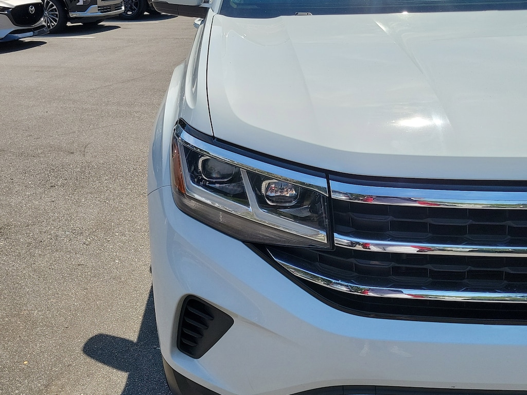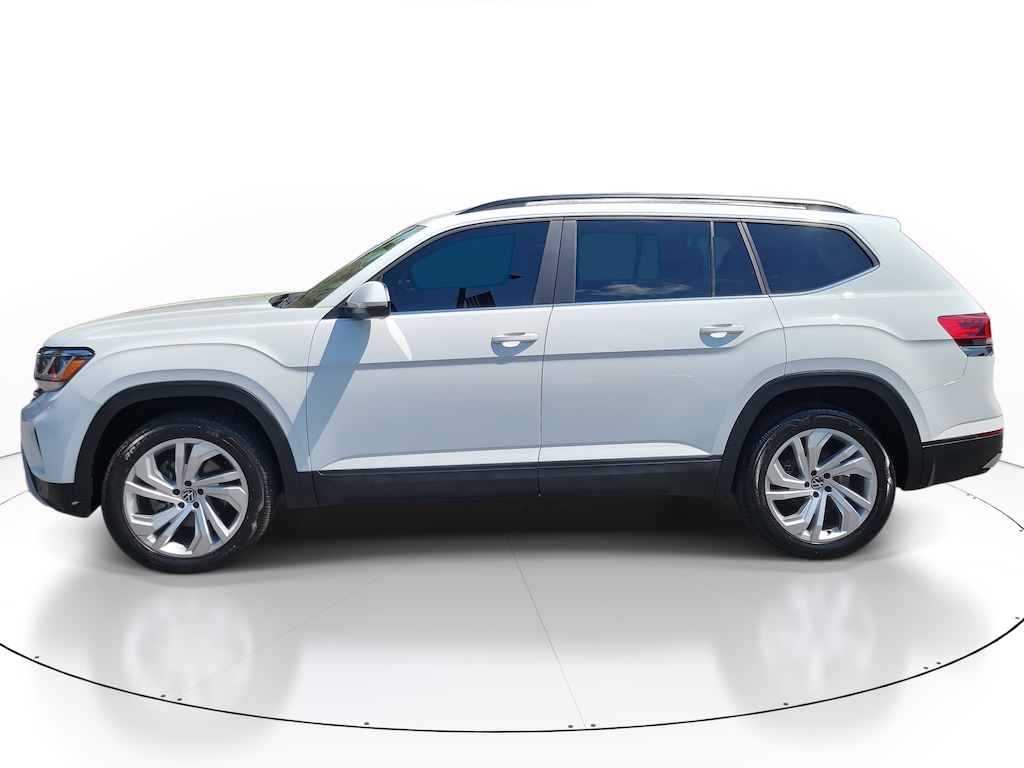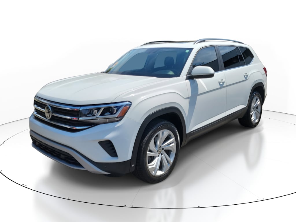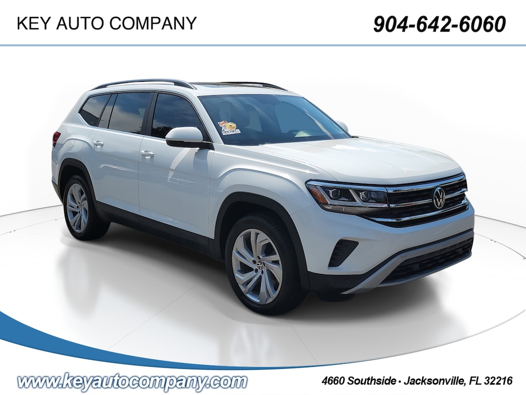 CARFAX One-Owner. Pure White 2021 Volkswagen Atlas 3.6L V6 SE w/Technology FWD 8-Speed Automatic with Tiptronic 3.6L VR6 Local Trade, Non-Smoker, Fully Detailed, Previously Serviced by Key, Extra Clean Interior, Low Miles For The Year, Extensive Service Records and History, New Vehicle Trade In, 2 SETS OF SMART KEYS, Atlas 3.6L V6 SE w/Technology, 4D Sport Utility, 3.6L VR6, 8-Speed Automatic with Tiptronic, FWD, Pure White, 3rd row seats: split-bench, 4-Wheel Disc Brakes, 6 Speakers, ABS brakes, Air Conditioning, Auto-dimming Rear-View mirror, Automatic temperature control, Brake assist, Compass, Delay-off headlights, Driver door bin, Driver vanity mirror, Dual front impact airbags, Dual front side impact airbags, Electronic Stability Control, Emergency communication system: VW Car-Net services (capabilities require enrollment or subscription), Exterior Parking Camera Rear, Forward collision: FCW w/Autonomous Emergency Braking mitigation, Four wheel independent suspension, Frameless Self-Dimming Rearview Mirror, Front anti-roll bar, Front Bucket Seats, Front Center Armrest, Front dual zone A/C, Front fog lights, Front reading lights, Fully automatic headlights, Heated Comfort Front Bucket Seats, Heated door mirrors, Heated front seats, Heavy Duty Trunk Liner w/VW CarGo Blocks, Illuminated entry, Leather Shift Knob, Low tire pressure warning, MDO Package (Captain's Chairs), Occupant sensing airbag, Outside temperature display, Overhead airbag, Overhead console, Panic alarm, Panoramic Sunroof, Panoramic Sunroof Package, Passenger door bin, Passenger vanity mirror, Perforated V-Tex Leatherette Seating Surfaces, Power door mirrors, Power driver seat, Power Liftgate, Power steering, Power windows, Privacy Cover, Radio data system, Rain sensing wipers, Rear air conditioning, Rear anti-roll bar, Rear reading lights, Rear seat center armrest, Rear window defroster, Rear window wiper, Remote keyless entry, Rubber Mats Kit - Captain's Chairs, Security system, Speed control, Speed-sensing steering, Split folding rear seat, Spoiler, Standard Suspension, Steering wheel mounted audio controls, Telescoping steering wheel, Tilt steering wheel, Towing Package, Traction control, Turn signal indicator mirrors, Variably intermittent wipers, Wheels: 20 5-Spoke Silver Alloy.